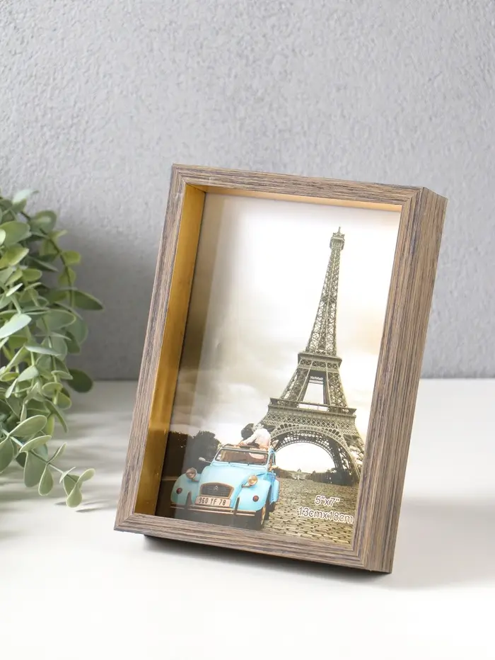Фоторамка пластик 13х18 см "Ламберто" бежево-чёрный с золотом 19х14х3,5 см