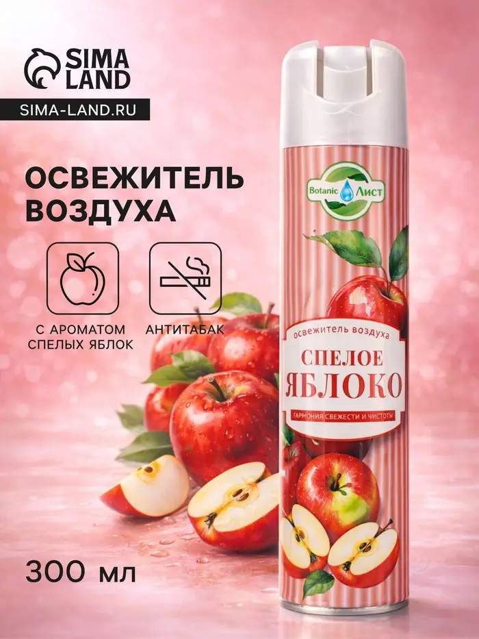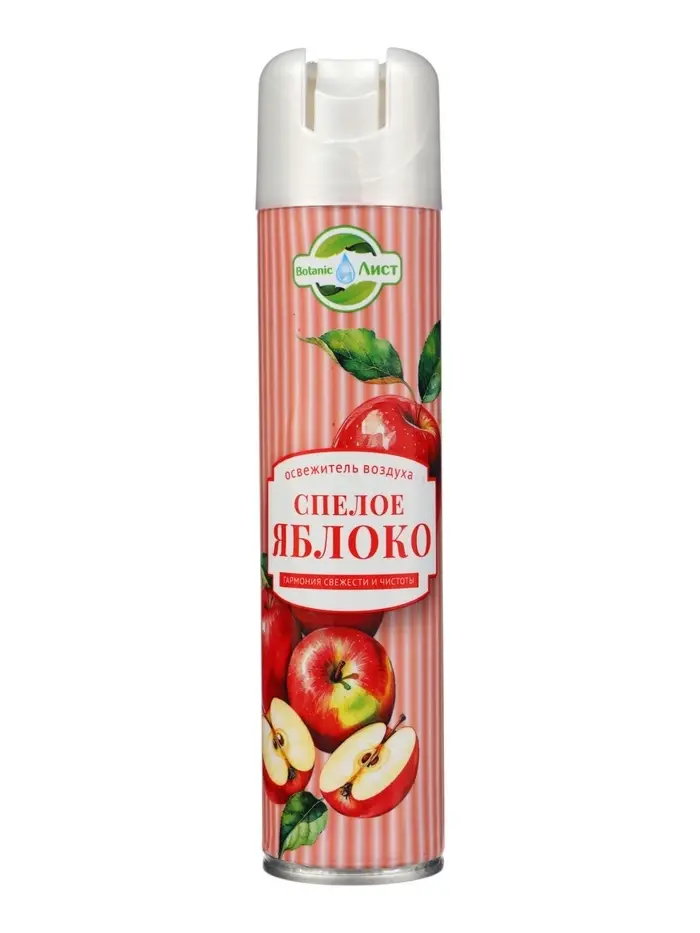 Освежитель воздуха Botanic «Лист» Спелое яблоко, 300 мл — это свежий, сочный и по-домашнему уютный аромат, который наполняет пространство ощущением чистоты, лёгкости и натуральной фруктовой свежести. Он создаёт атмосферу, будто в комнате только что разрезали спелое, хрустящее яблоко, наполненное соком и природной сладостью.