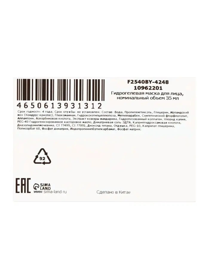 Гидрогелевая маска с антиоксидантами, 35 мл