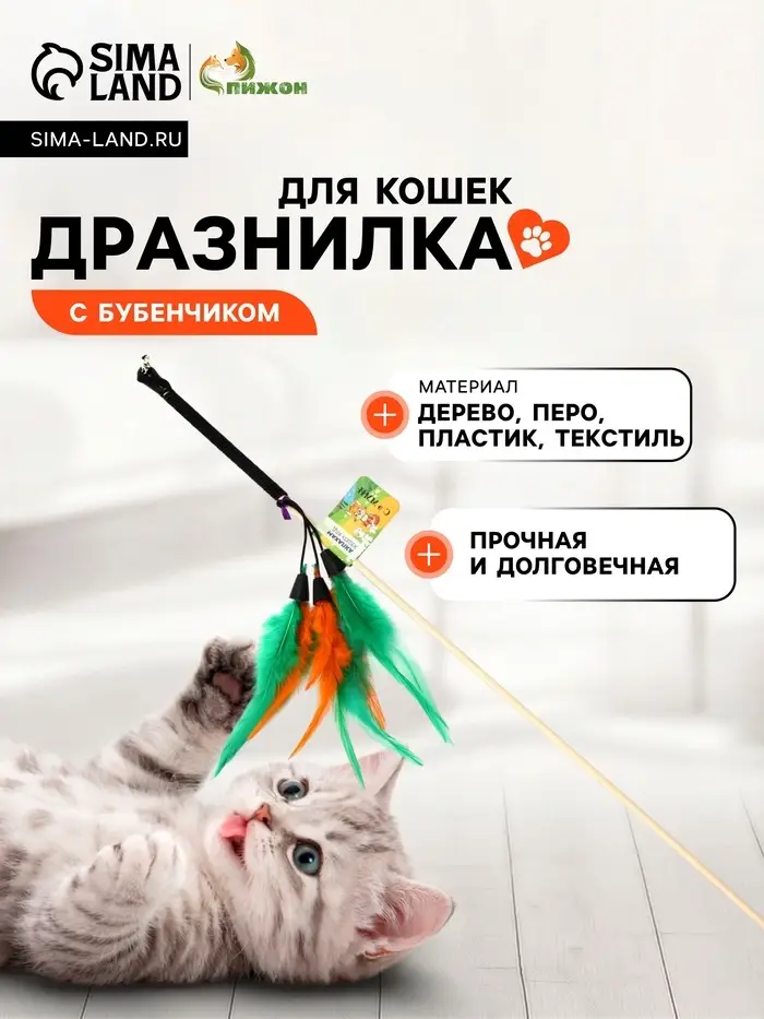 Охотничий инстинкт просыпается с первого взмаха — перья порхают, бубенчик звенит, а кошка не может устоять. Удочка-дразнилка с перьями и бубенчиком – это простая и эффективная игрушка для активных игр с кошкой.