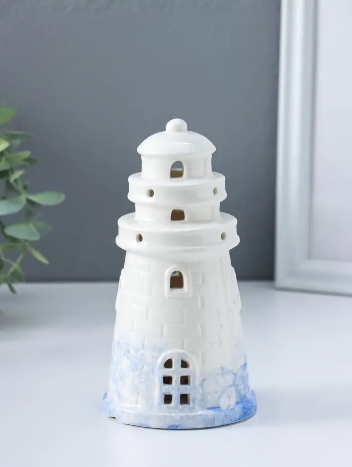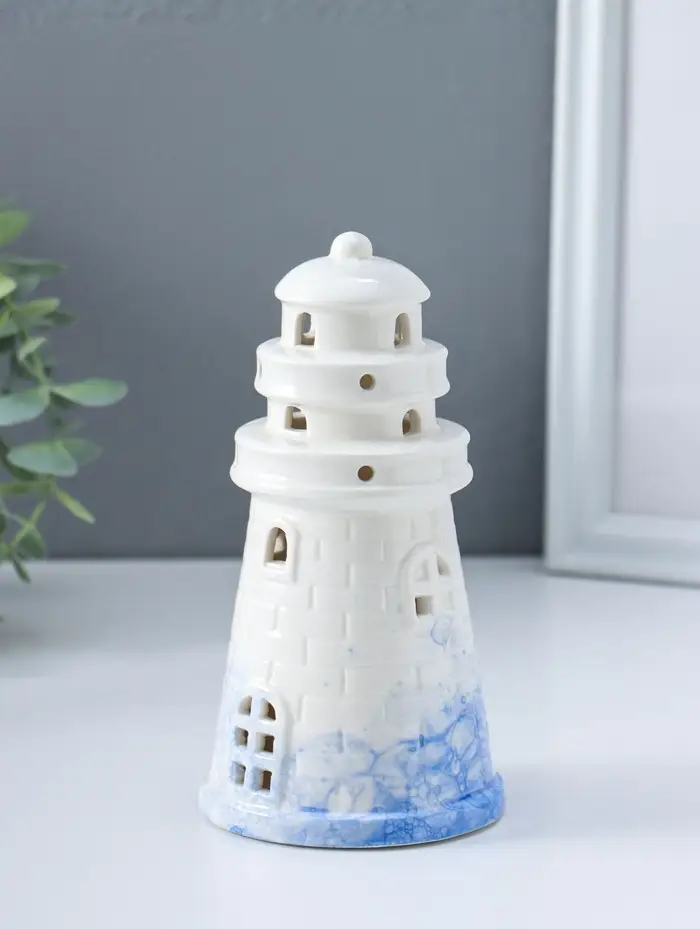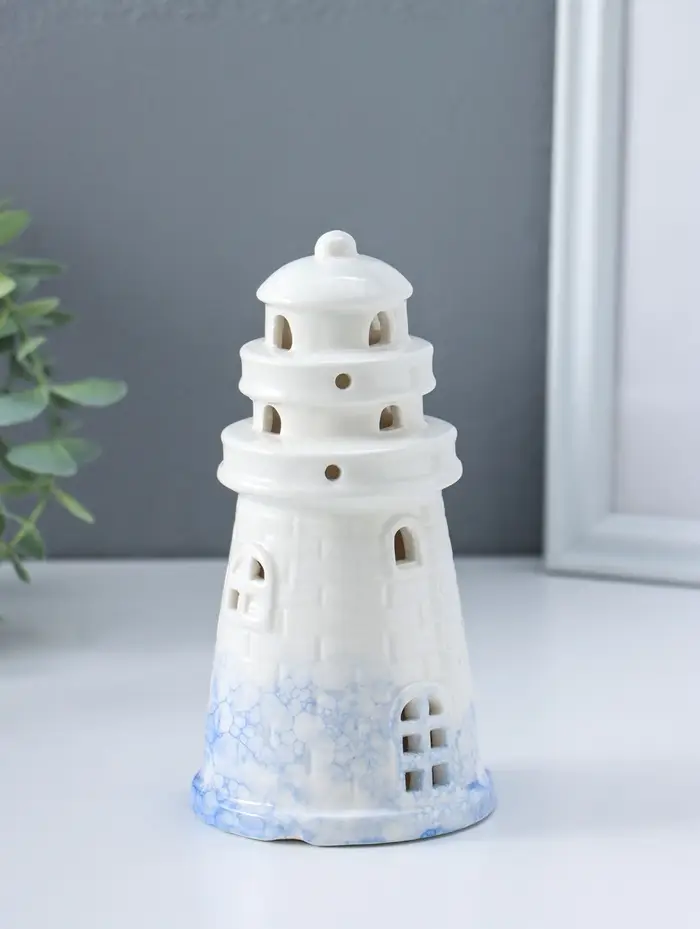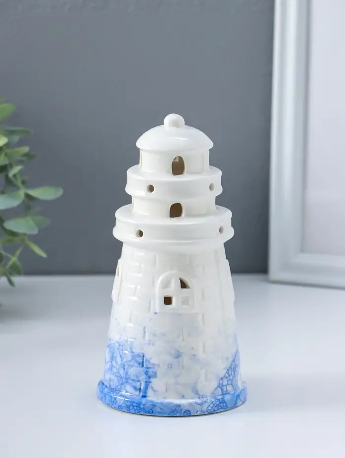 Сувенир керамика свет "Маяк" бело-синий 8х8х15,5 см