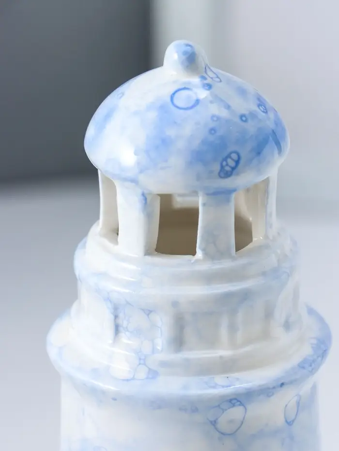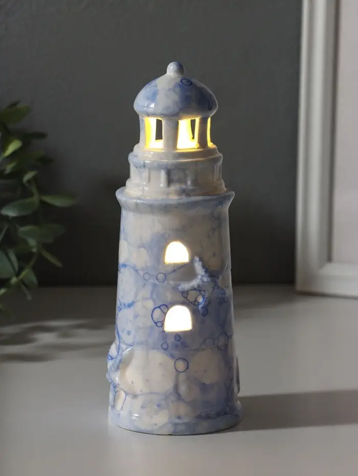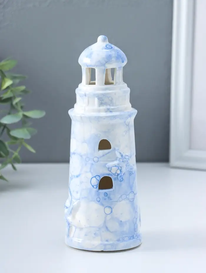 Сувенир керамика свет "Маяк" мраморный бело-синий 6,5х6,5х18 см