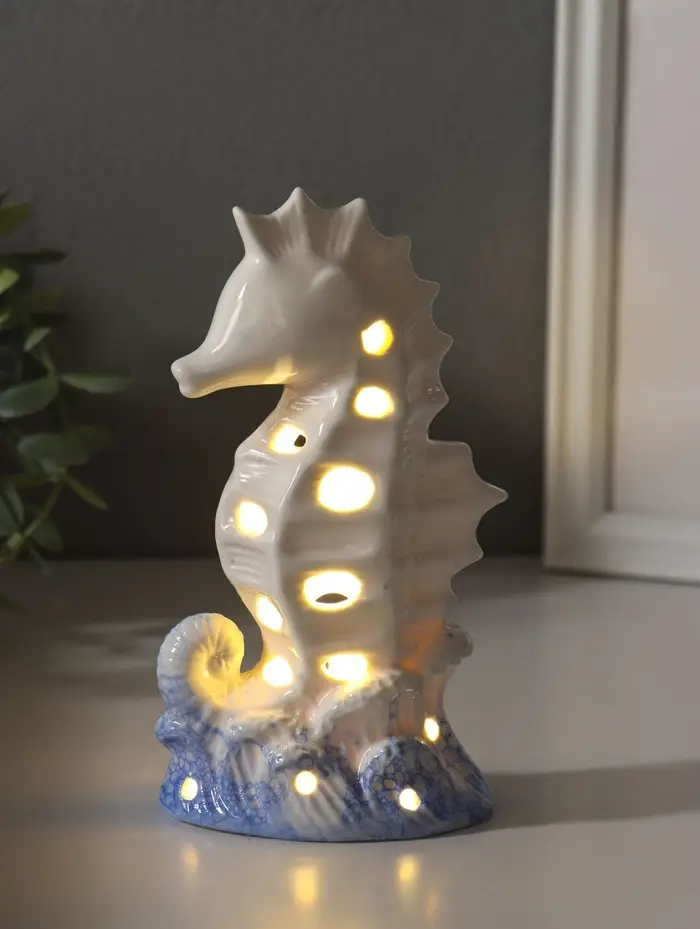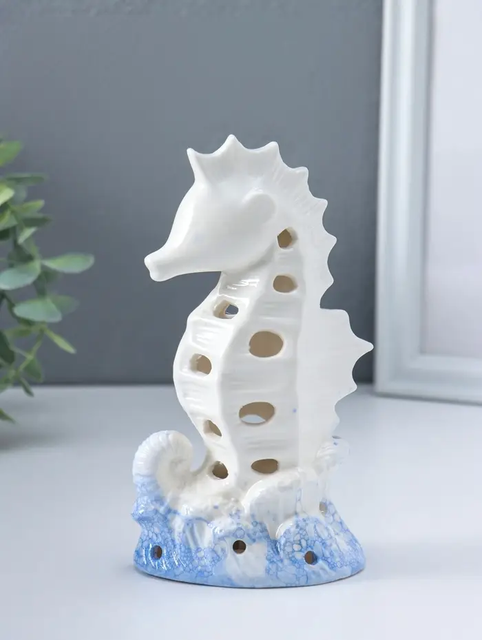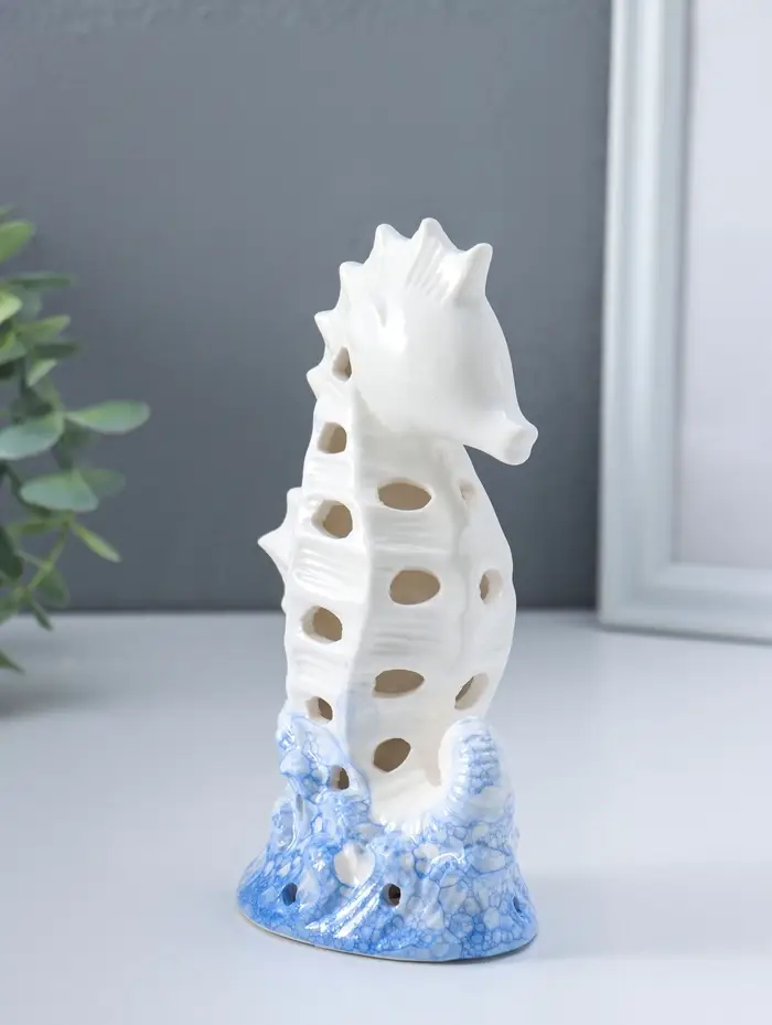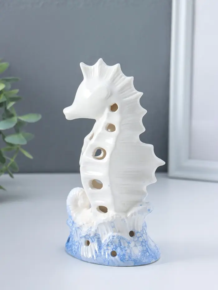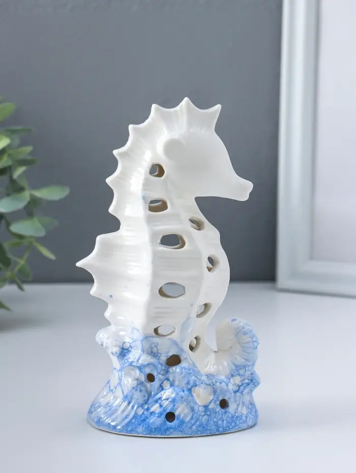 Сувенир керамика свет "Морской конёк" бело-синий 6,5х8,5х16,5 см