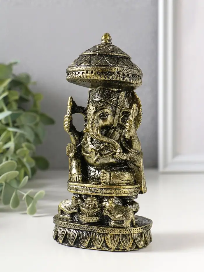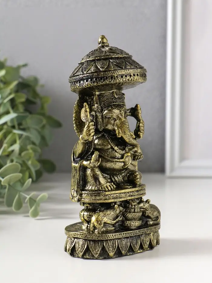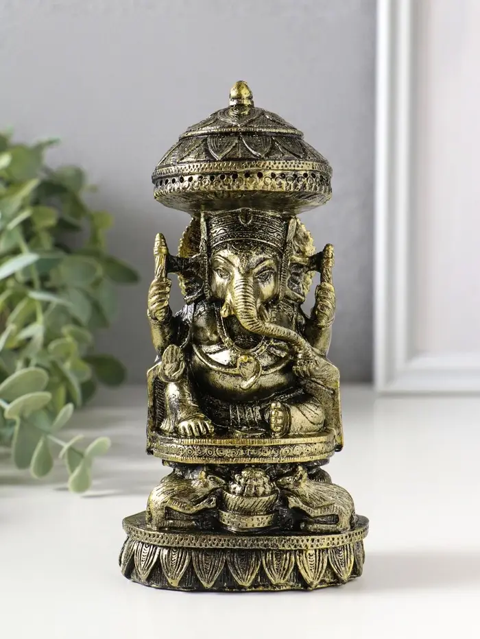 Сувенир полистоун "Ганеша с крысами" бронза 5,3х8х15,5 см
