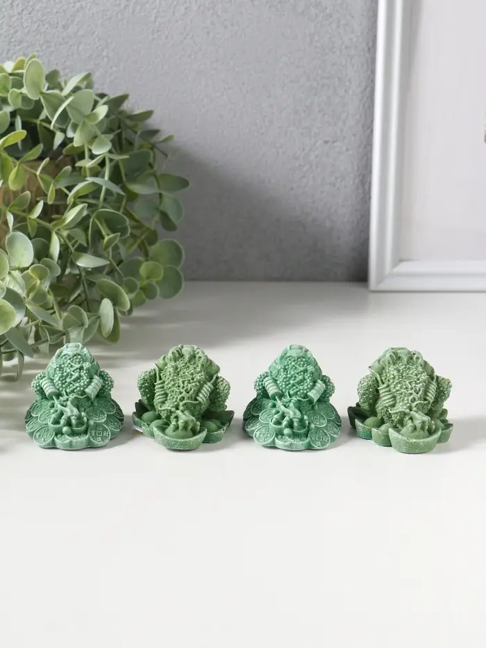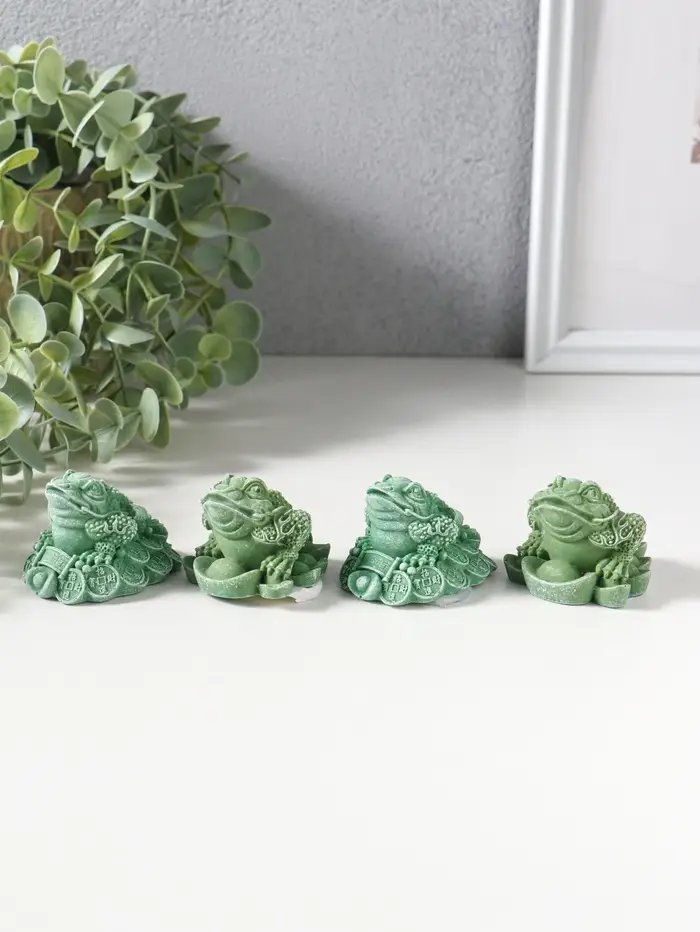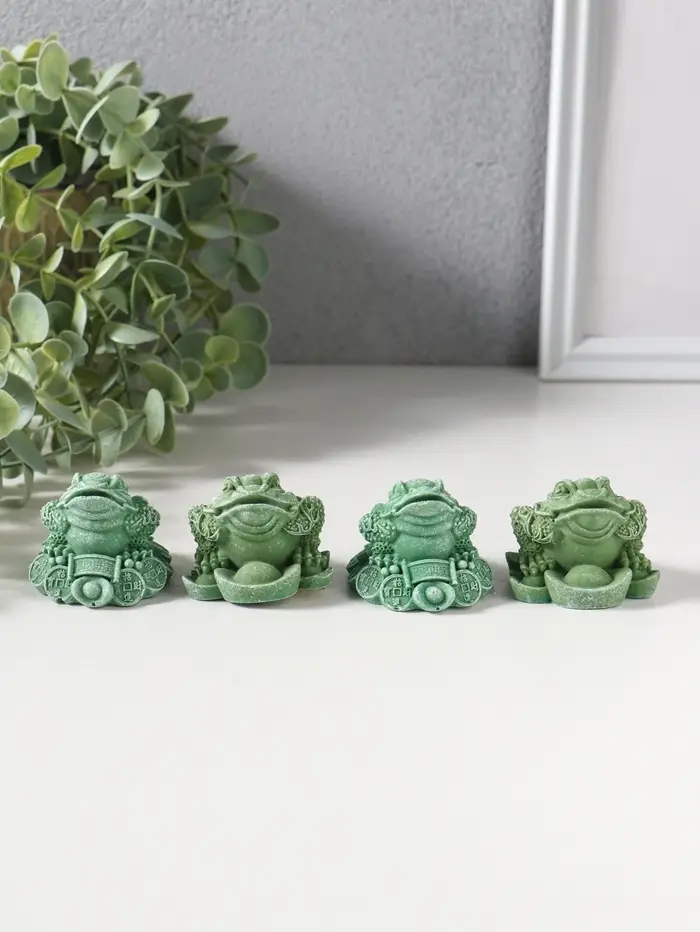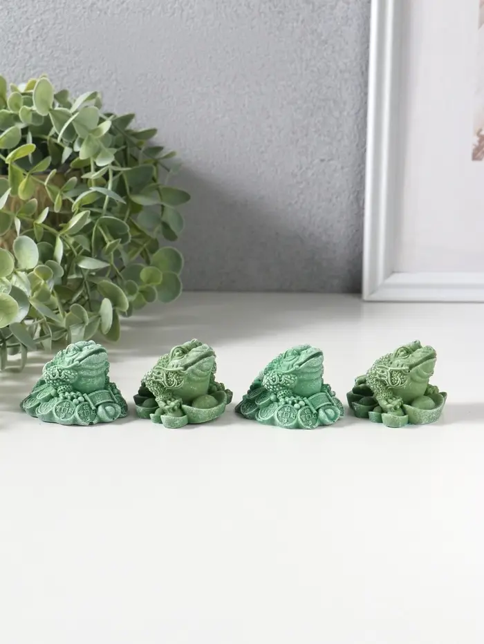Сувенир полистоун "Денежная жаба на монетах со слитком" набор 4 шт зелёный 5х4,3х4 см