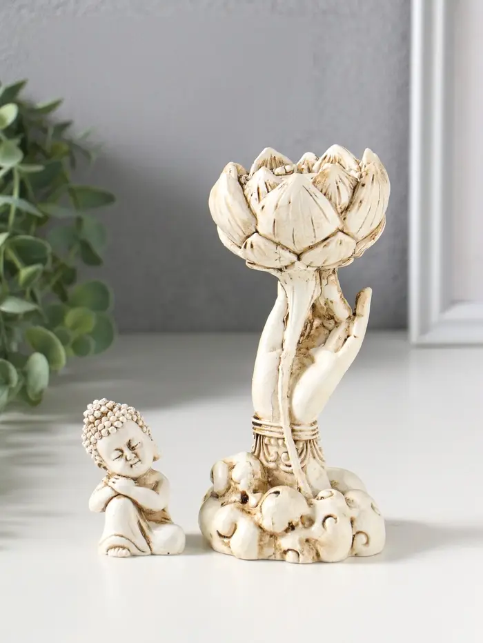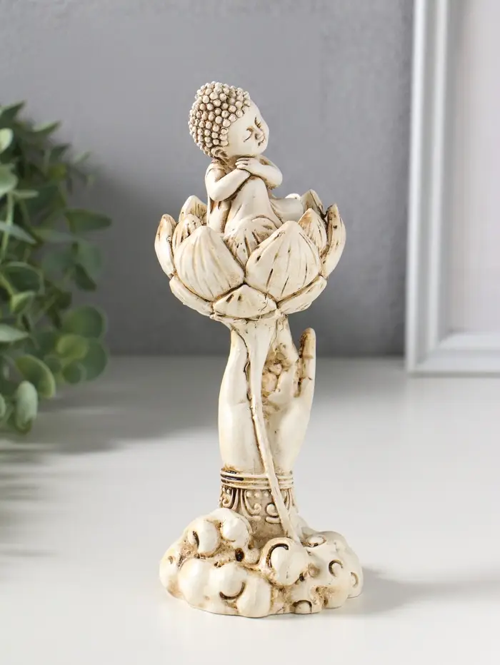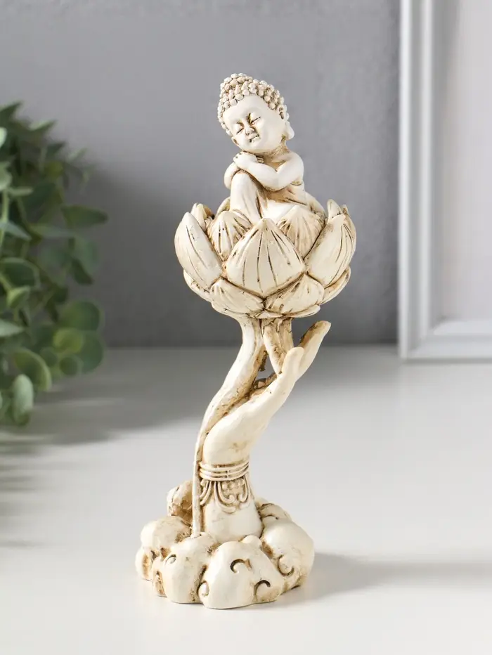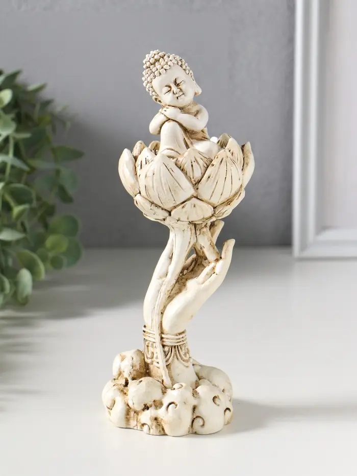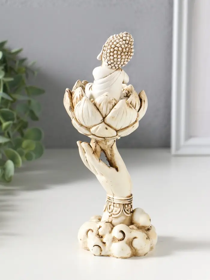 Сувенир полистоун "Рука с лотосом и Буддой" беж 7х7,5х18 см