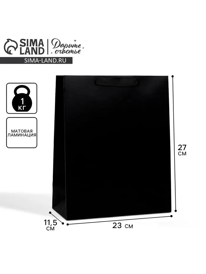 Пакет подарочный ламинированный, упаковка, «Чёрный», ML 23 х 27 х 11.5 см