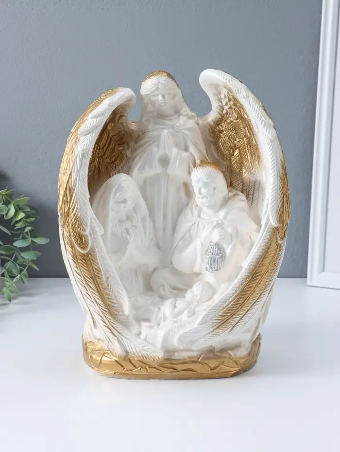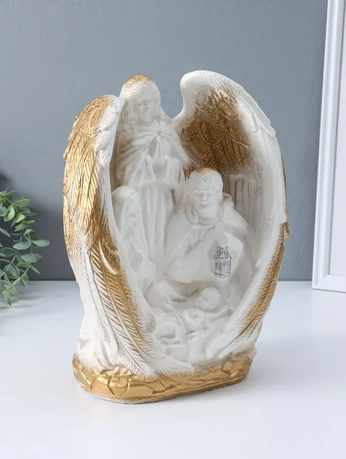 Фигура "Ангел хранитель" белый с золотом 35х25х15 см