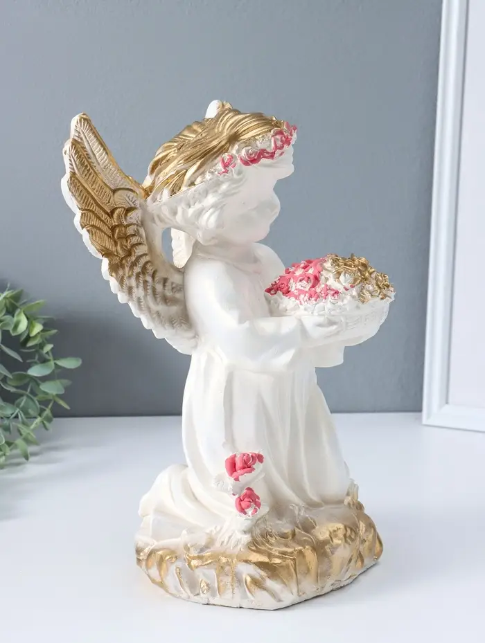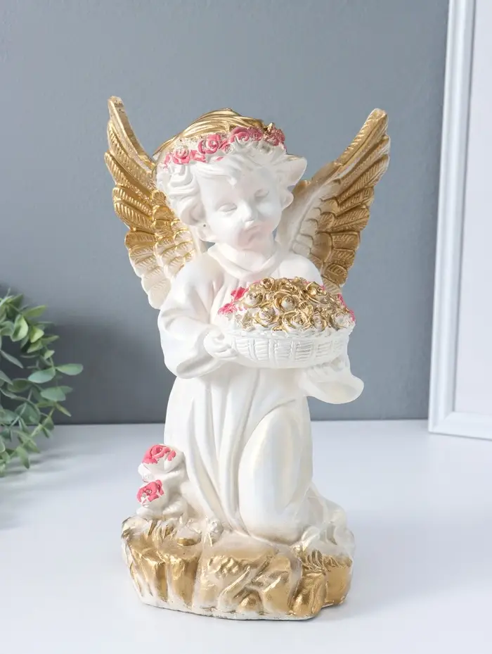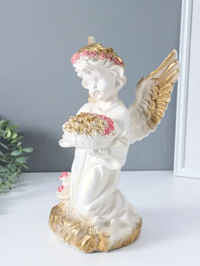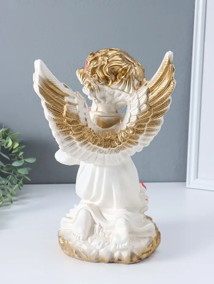 Фигура "Ангел с букетом" перламутр с золотом, 37х23х23 см