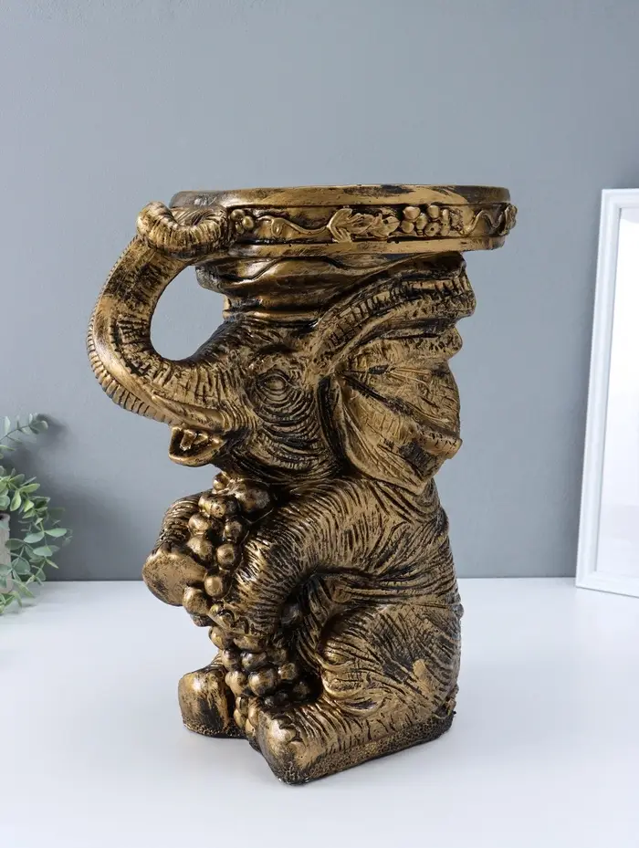 Фигура-подставка "Слон сидя" чёрный с золотом, 44х37х30 см