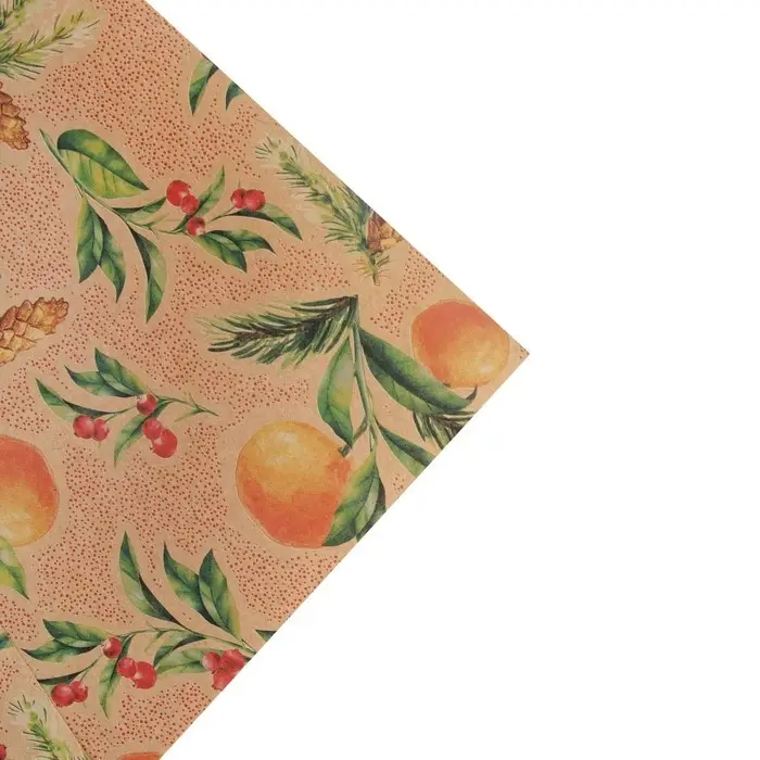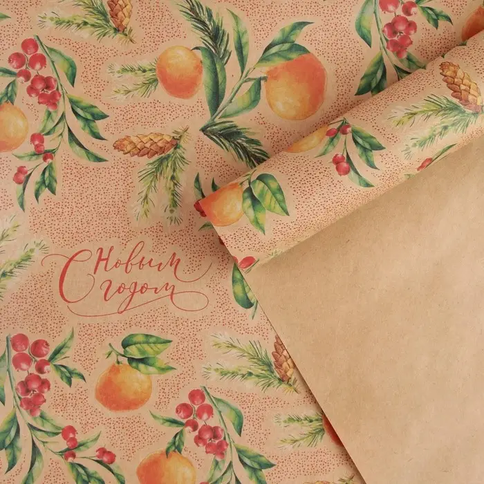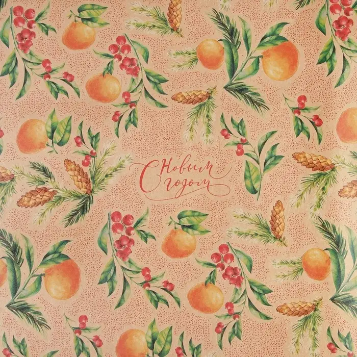 Упаковочная бумага на новый год крафтовая «Мандарины», 70 х 100 см