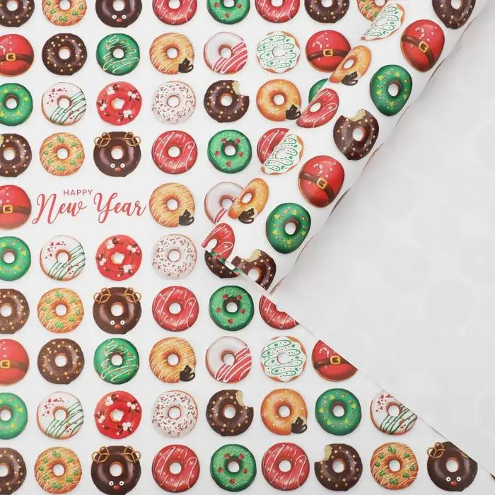 Упаковочная бумага на новый год «Новогодние пончики», 70 х 100 см, глянцевая