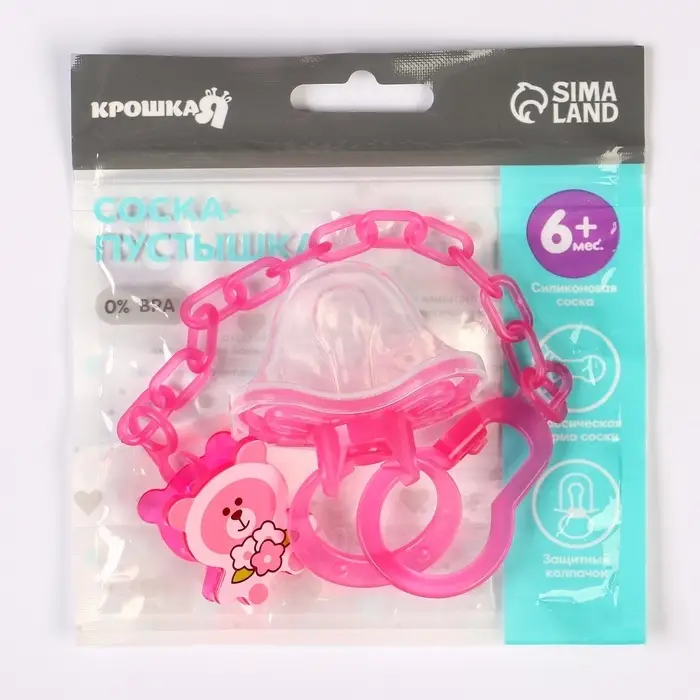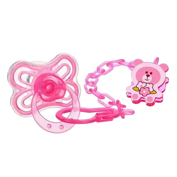 Соска - пустышка с держателем «Бабочка», SL, КЛ +6 мес., с колпачком, розовая