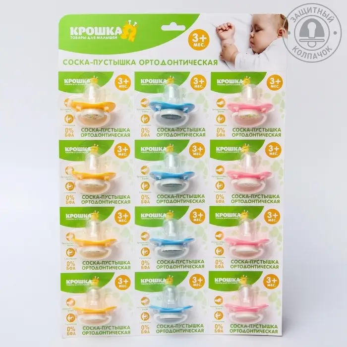 Пустышка ортодонтическая, с колпачком, от 3 мес., МИКС