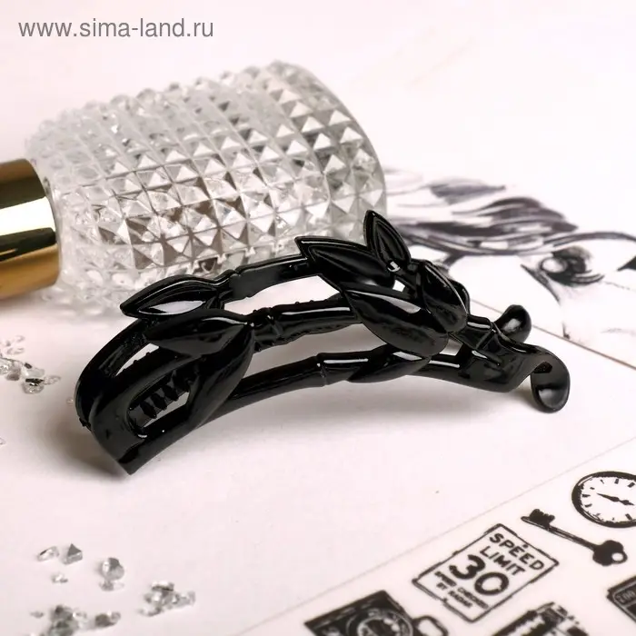 Банан для волос "Классика" листочки, 10,5 см, чёрный