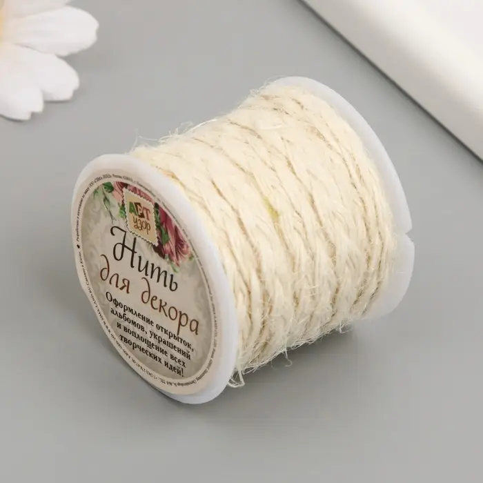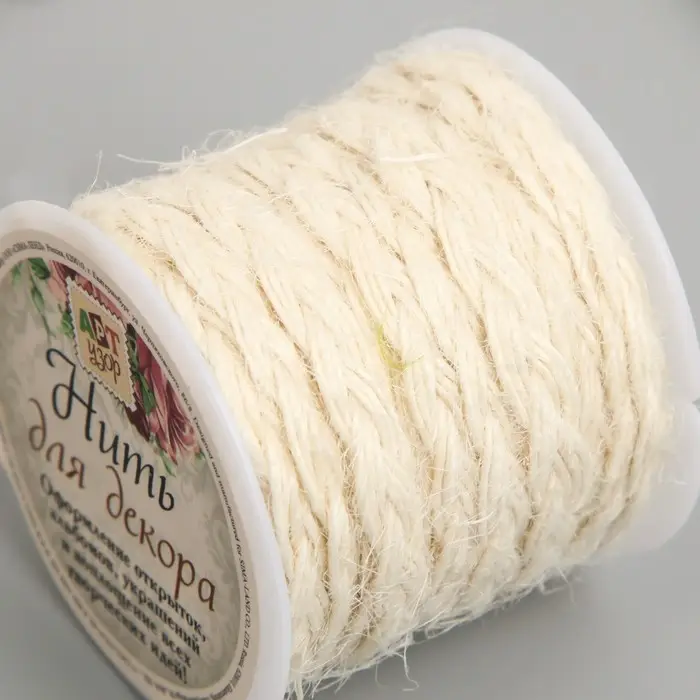 Шнур для вязания 100% джут "Отбеленный" 3 м 4,7х4,7х4,2 см