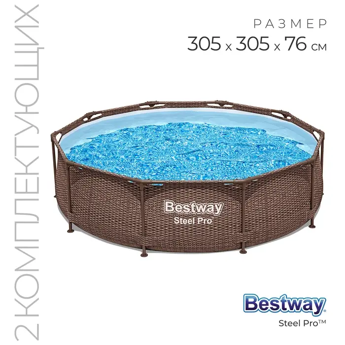Каркасный бассейн подойдёт для размещения на придомовом участке. Изделие выполнено из прочных материалов, что гарантирует долговечность и устойчивость.