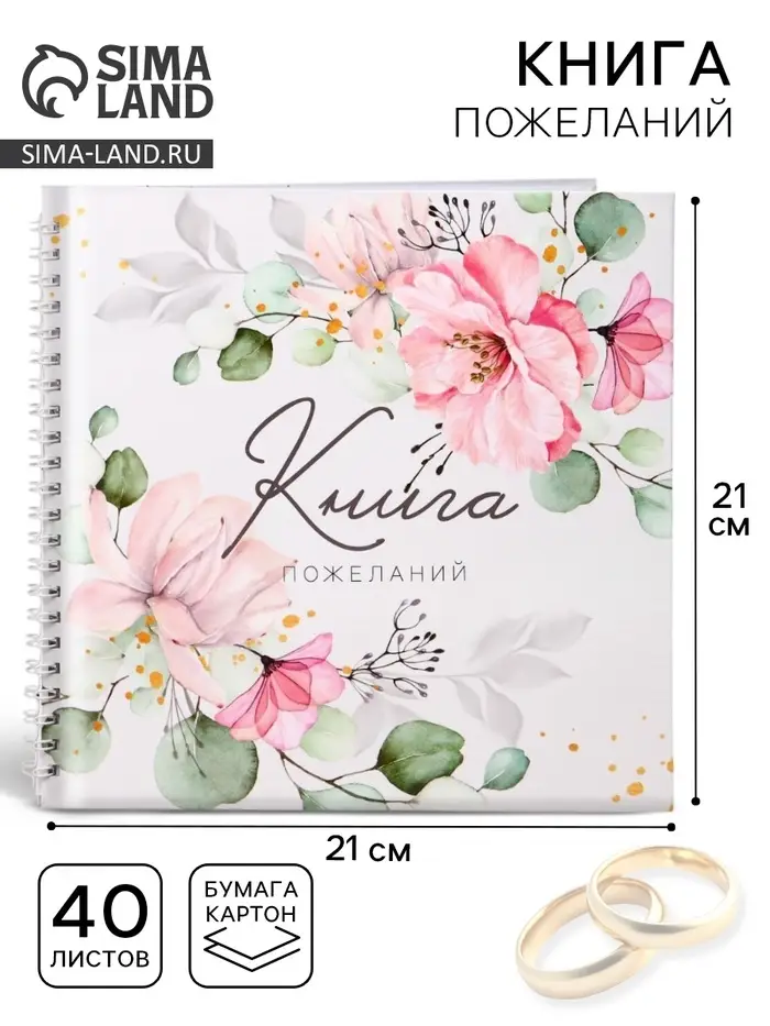 Книга пожеланий на свадьбу, на пружине, 21.1×21 см, «Цветы»