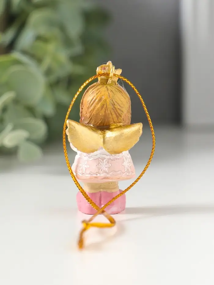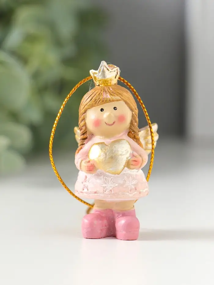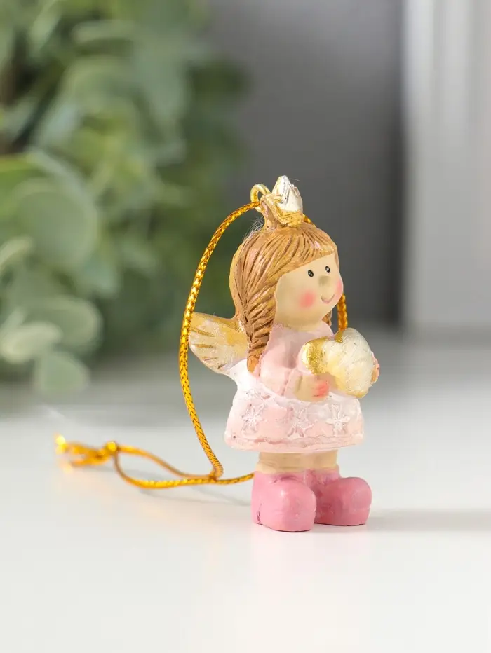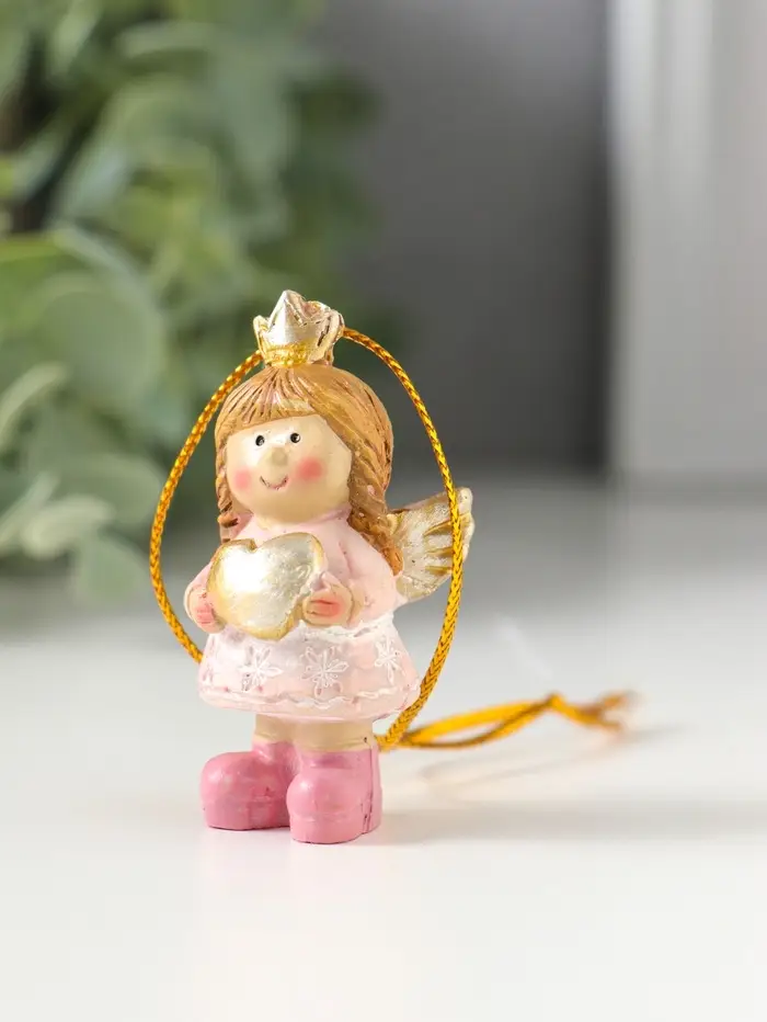 Сувенир полистоун "Малышка-ангел в розовом платье, с сердцем в руках" 3х2,5х5,5 см