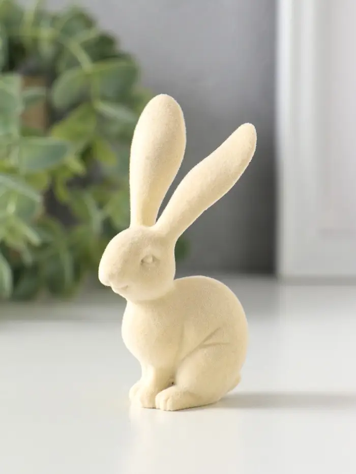 Сувенир полистоун, флок "Белый заяц" 3х4,5х8,5 см