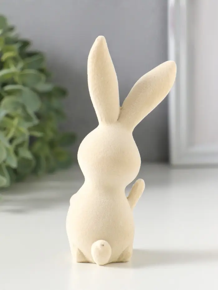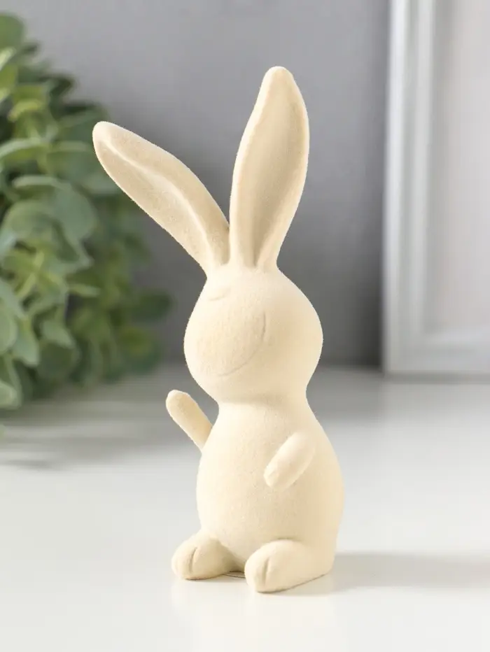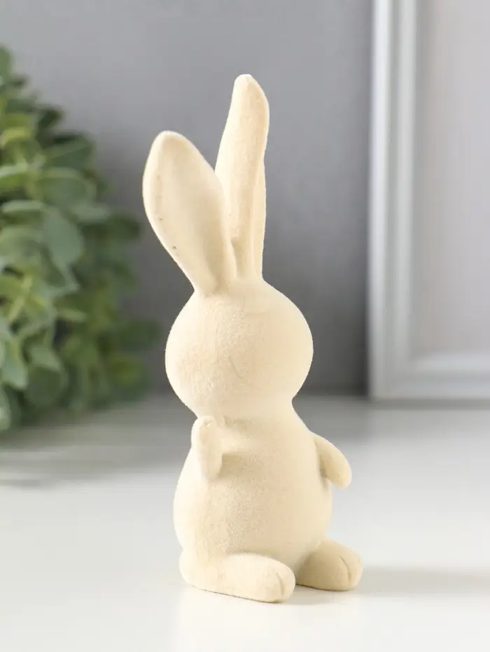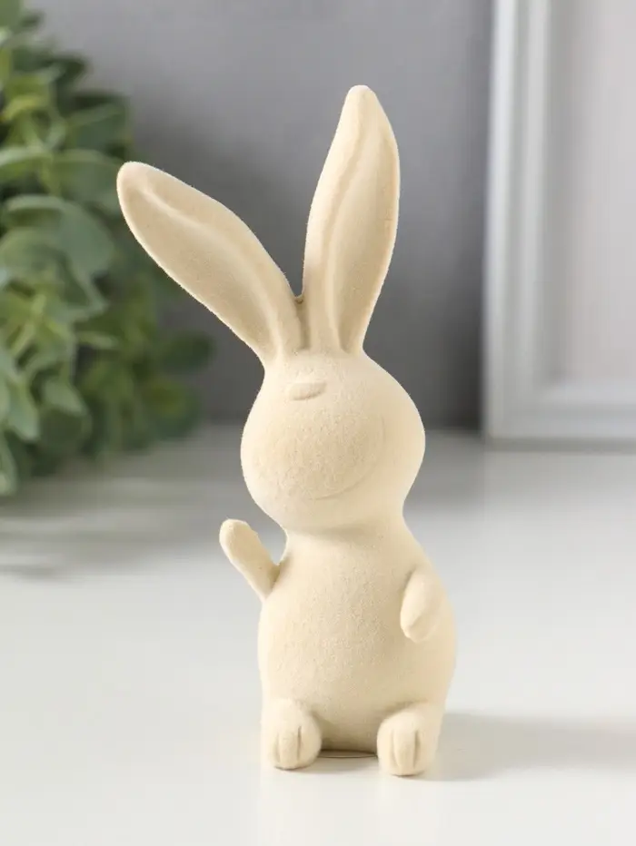 Сувенир полистоун, флок "Весёлый заяц - Привет!" 5х5х11,5 см