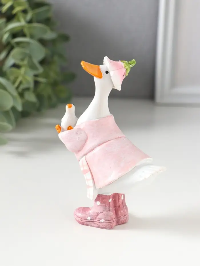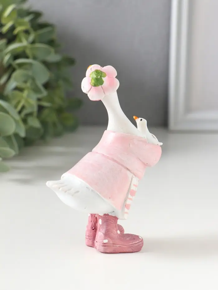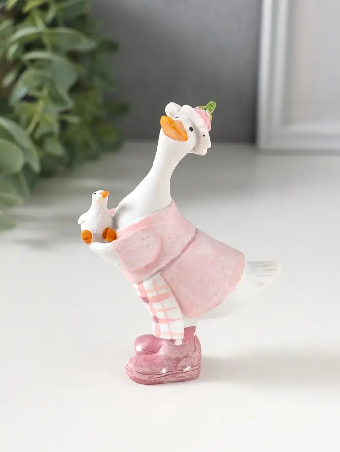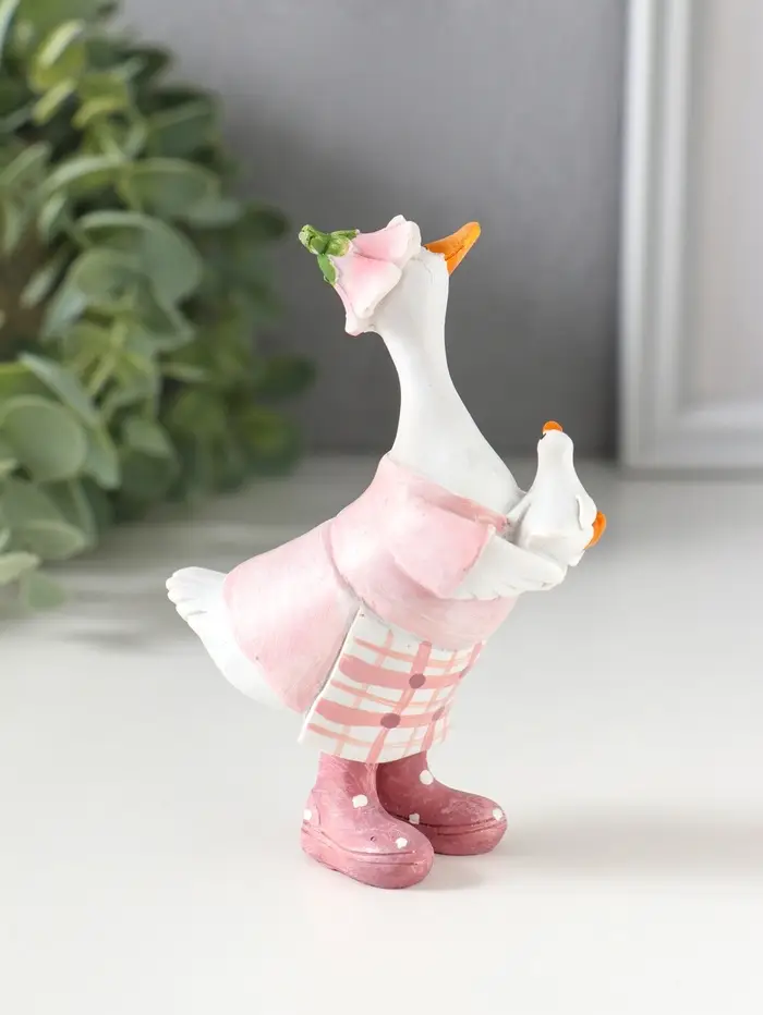 Сувенир полистоун "Гусыня в розовом платье с передником, с малышом" 6х4х9,5 см