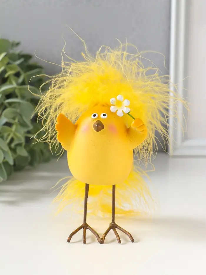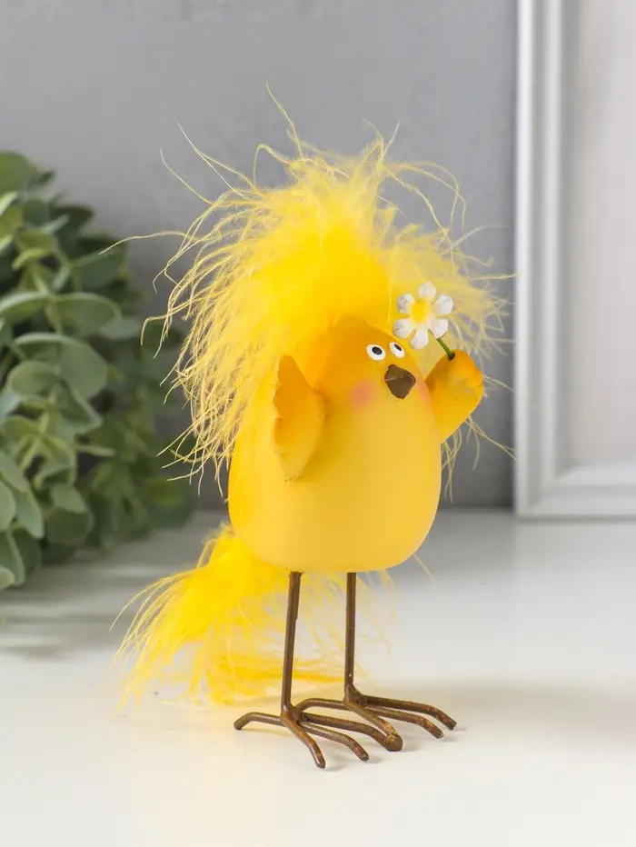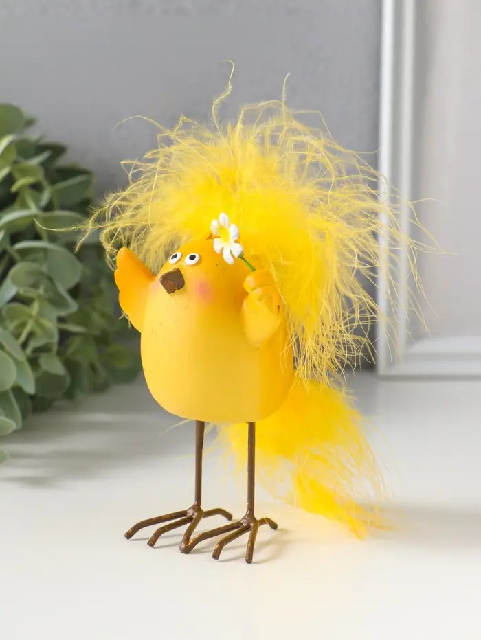 Сувенир полистоун "Цыплёнок с хохолком, с цветочком" 6,5х5х11,5 см