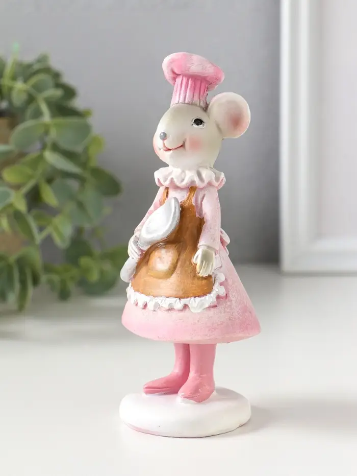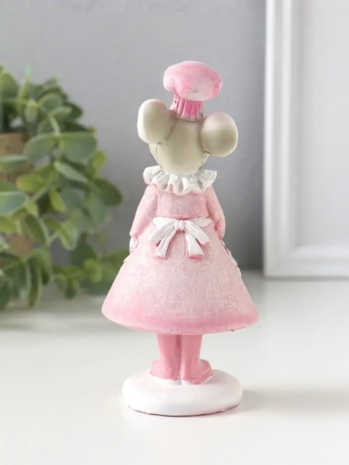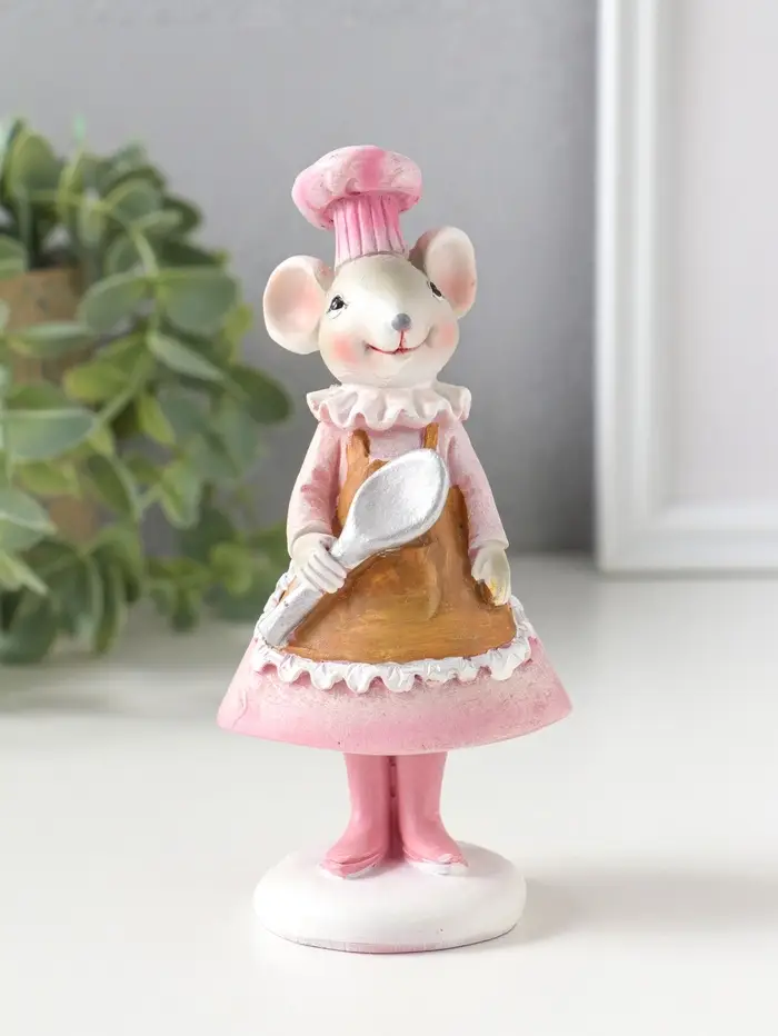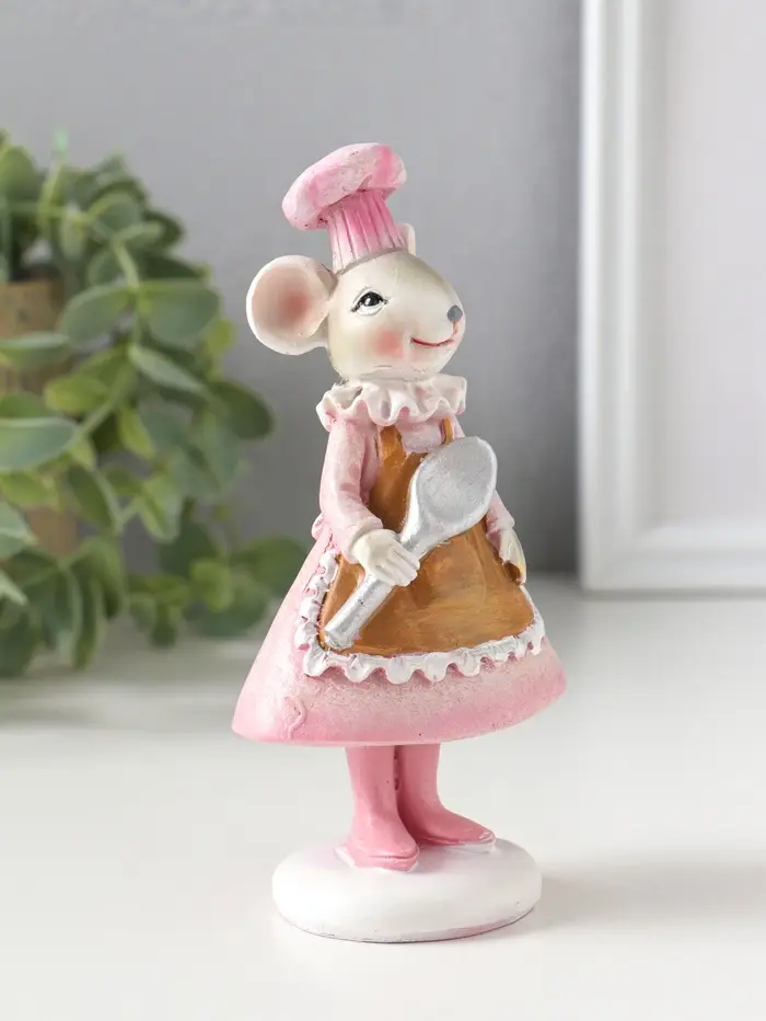Сувенир полистоун "Мышка-поварёнок в розовом платье и колпаке, с ложкой" 6х4,5х13 см