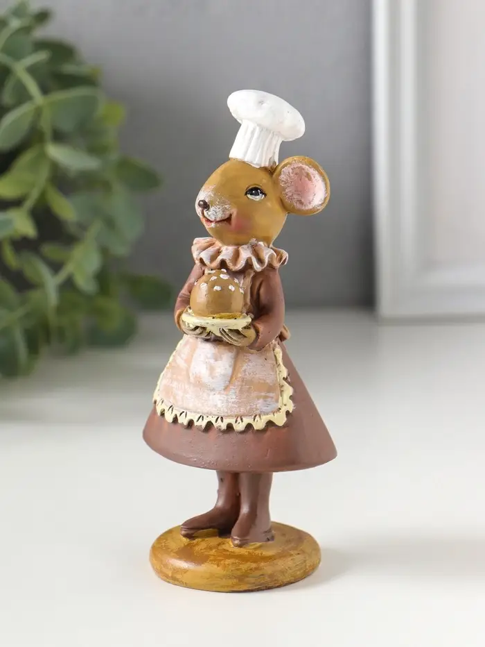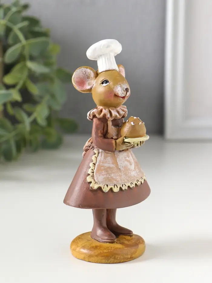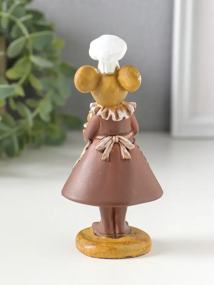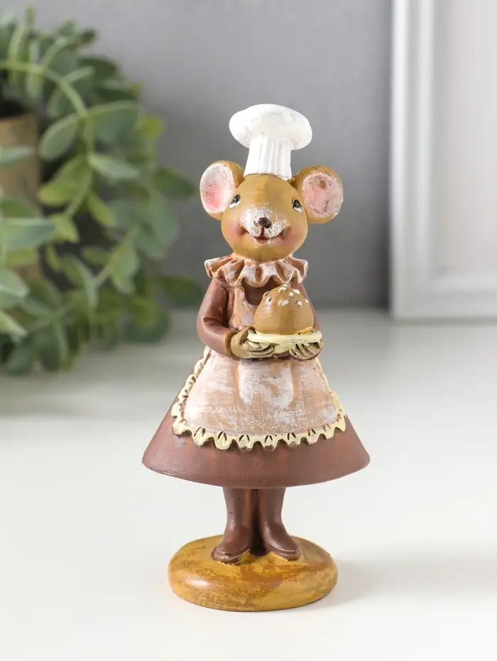 Сувенир полистоун "Мышка-пекарь в тёмном платье, с хлебом" 6х4,5х13 см