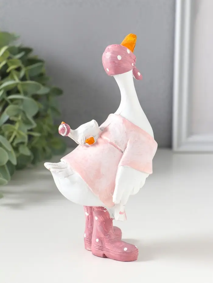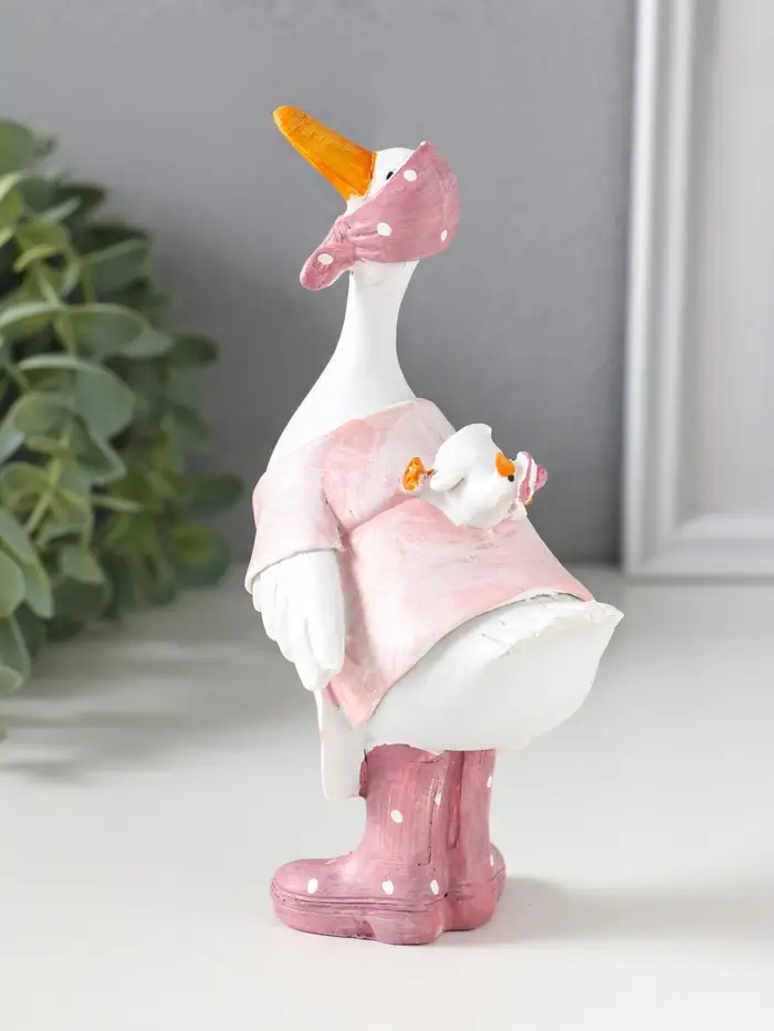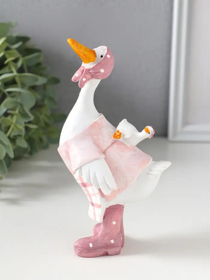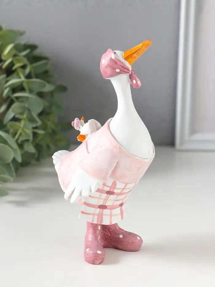 Сувенир полистоун "Гусыня в розовой косынке, с малышом на спине" 9х6,5х15 см