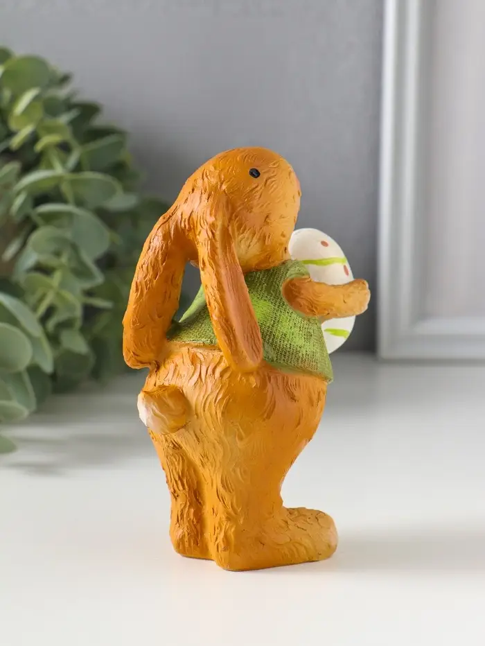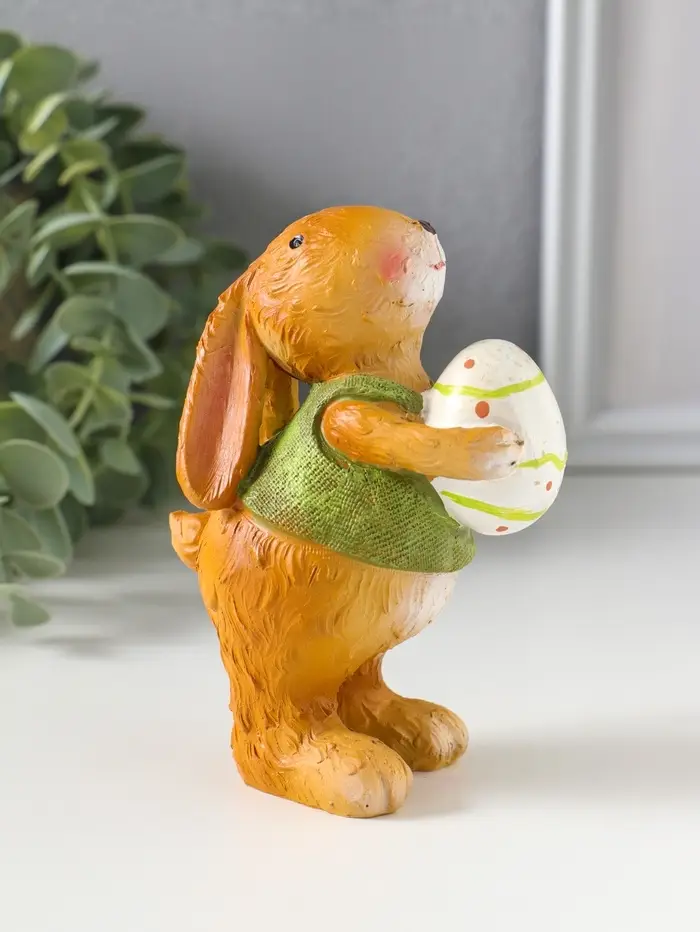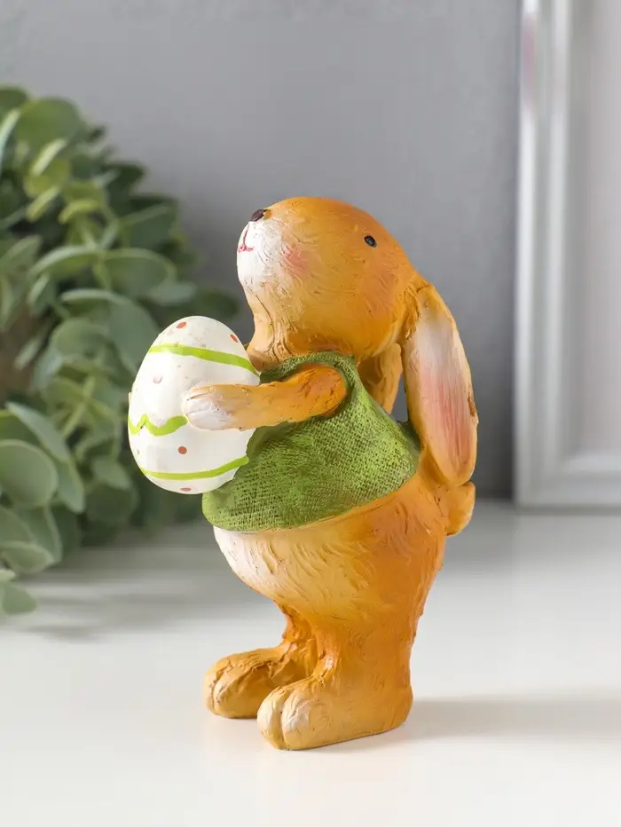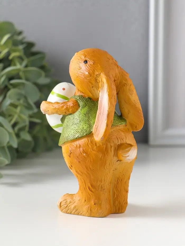 Сувенир полистоун "Зайчик в зелёной маечке с пасхальным яичком в лапках" 5,5х6,5х13 см