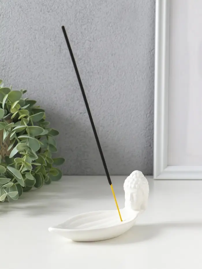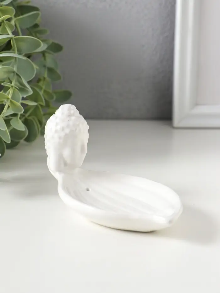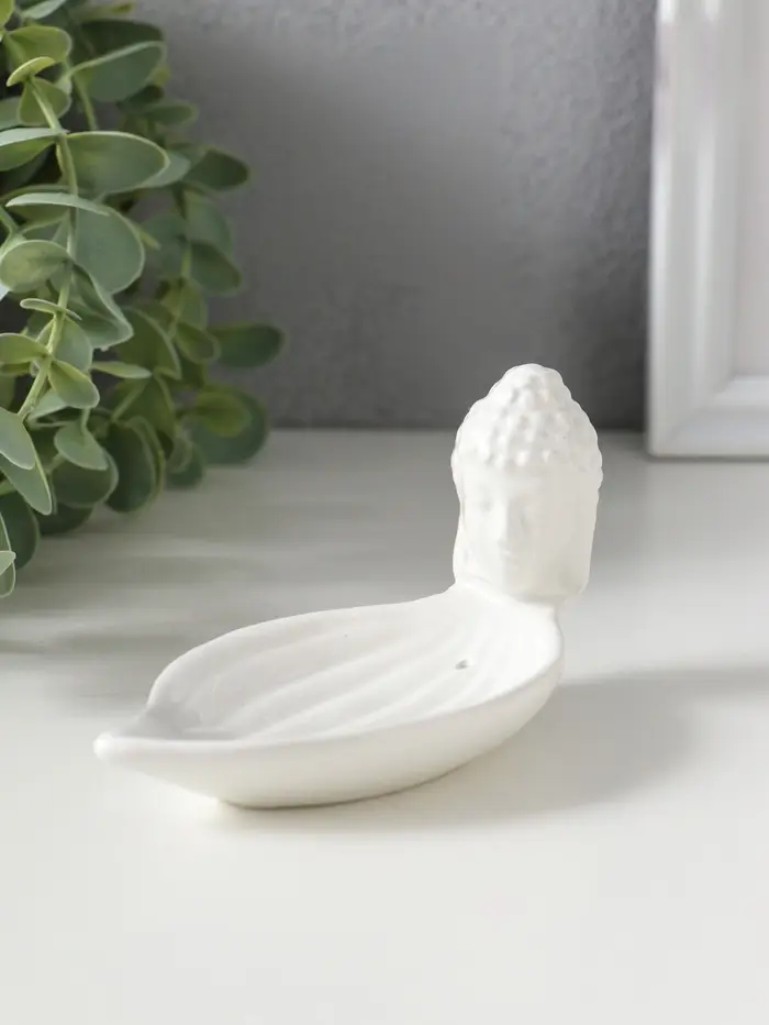 Подставка для благовоний керамика "Голова Будды" белая 12х6,5х6 см