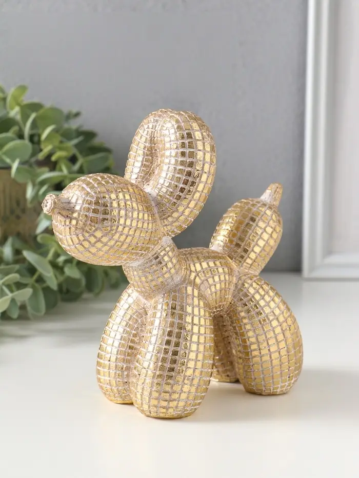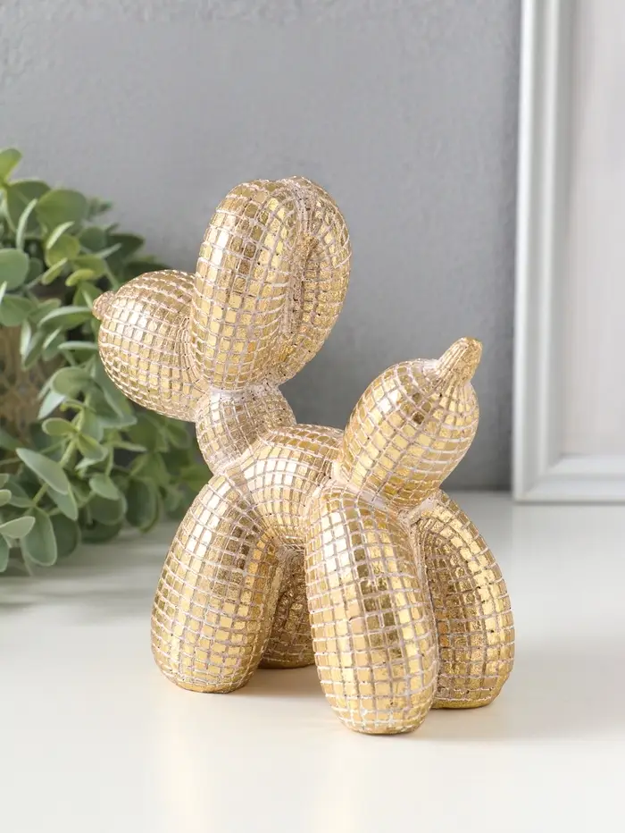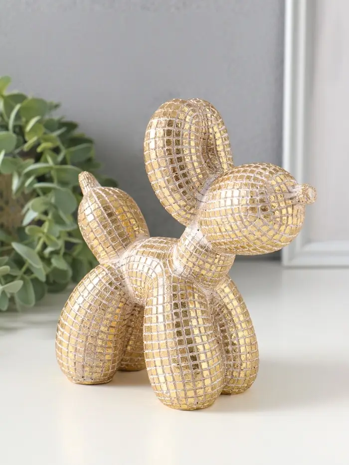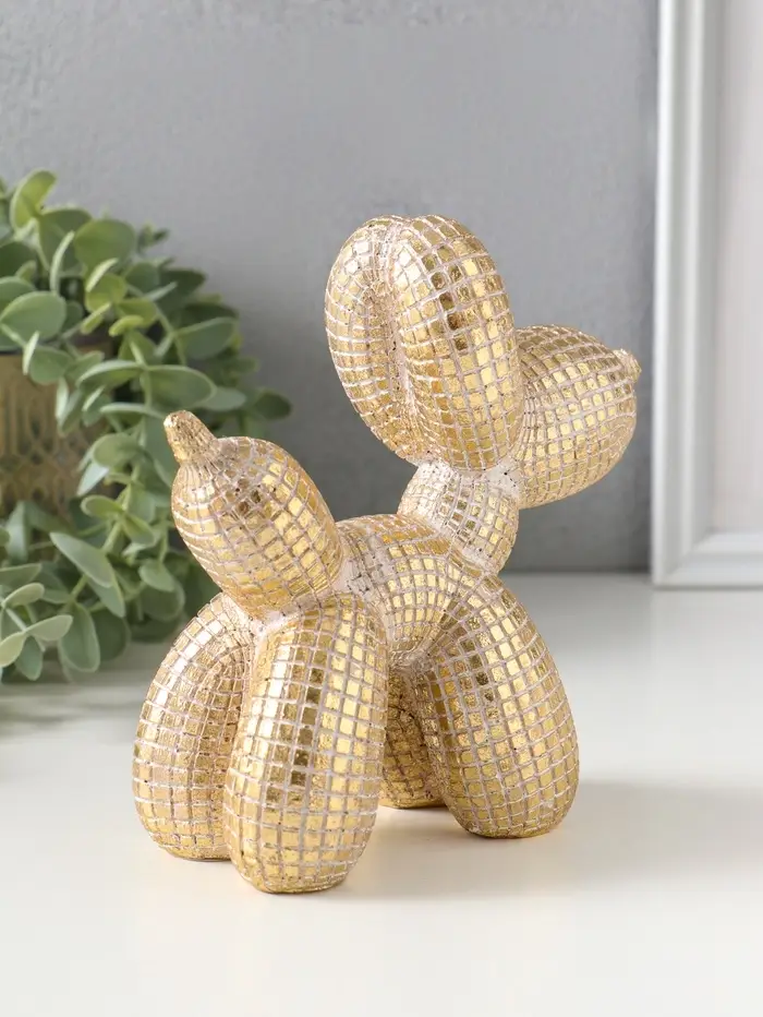 Сувенир полистоун "Воздушный шарик - собачка, в клеточку" золото 15х6,7х15 см