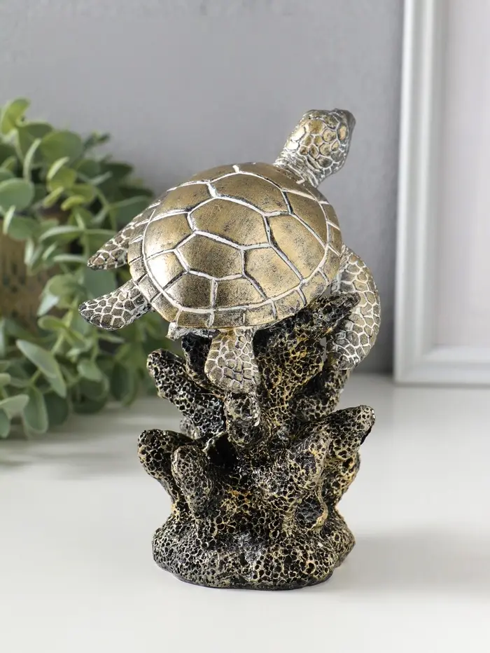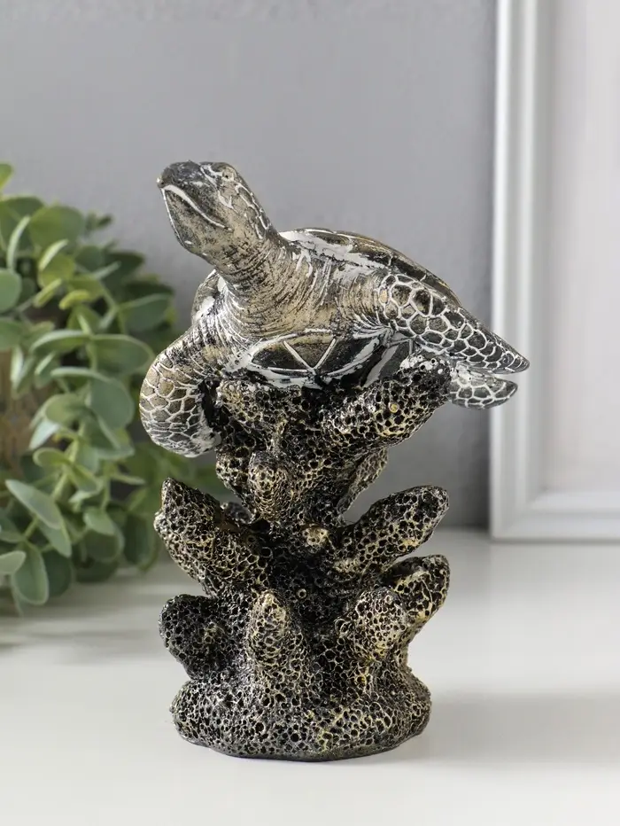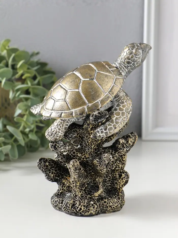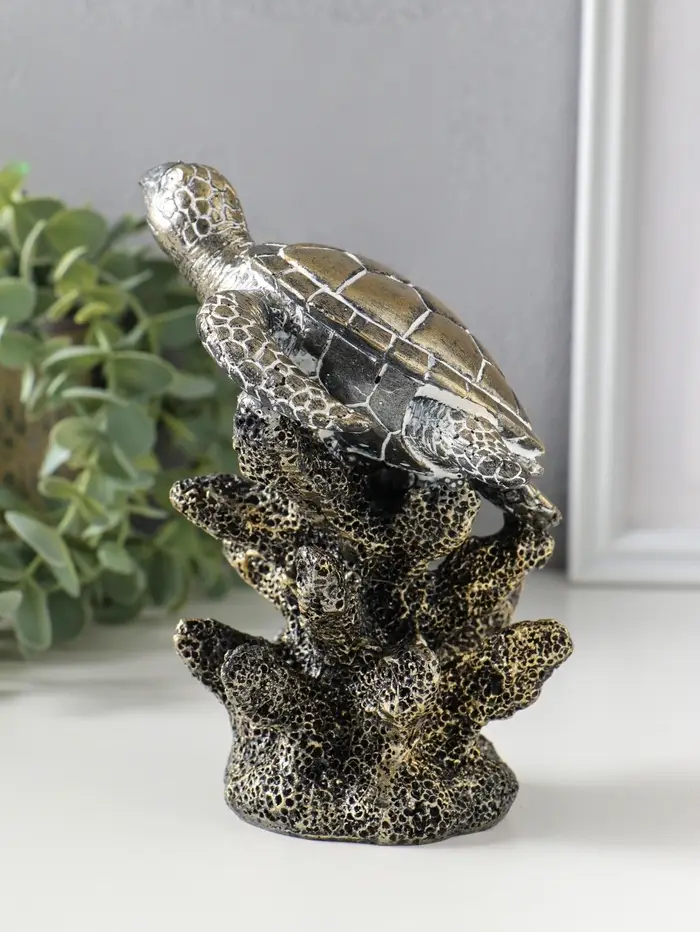 Сувенир полистоун "Морская черепаха в кораллах" бронза с белой патиной 11,5х10,5х16 см