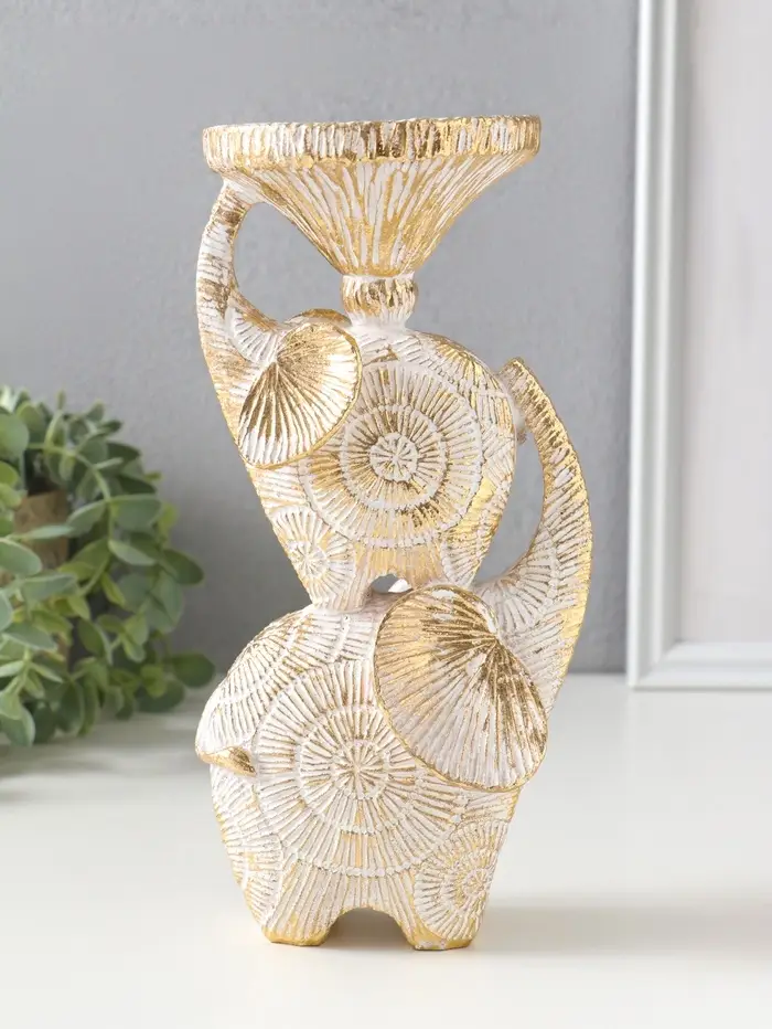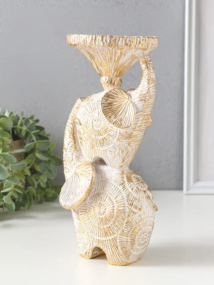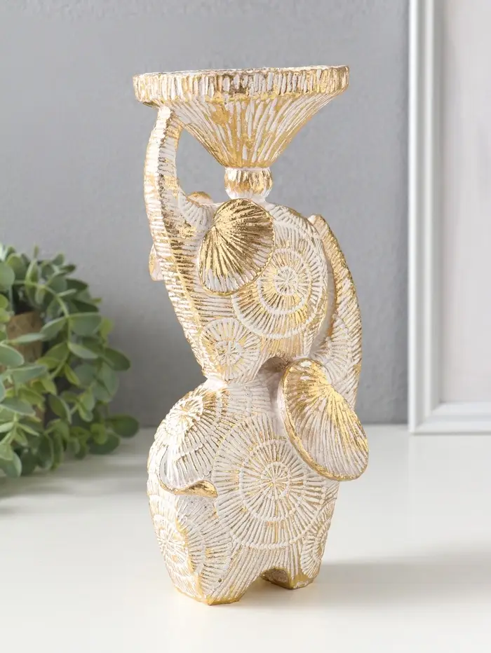 Подсвечник полистоун на 1 свечу "Слоны. Золотые круги" d=8 см 12х10х24 см