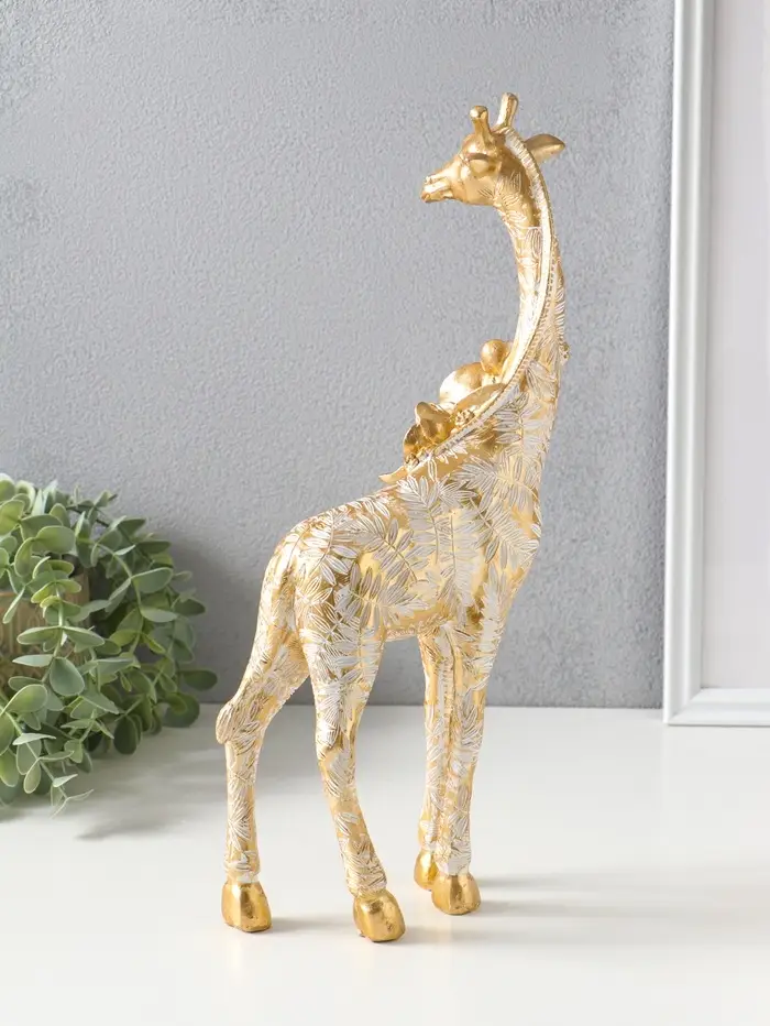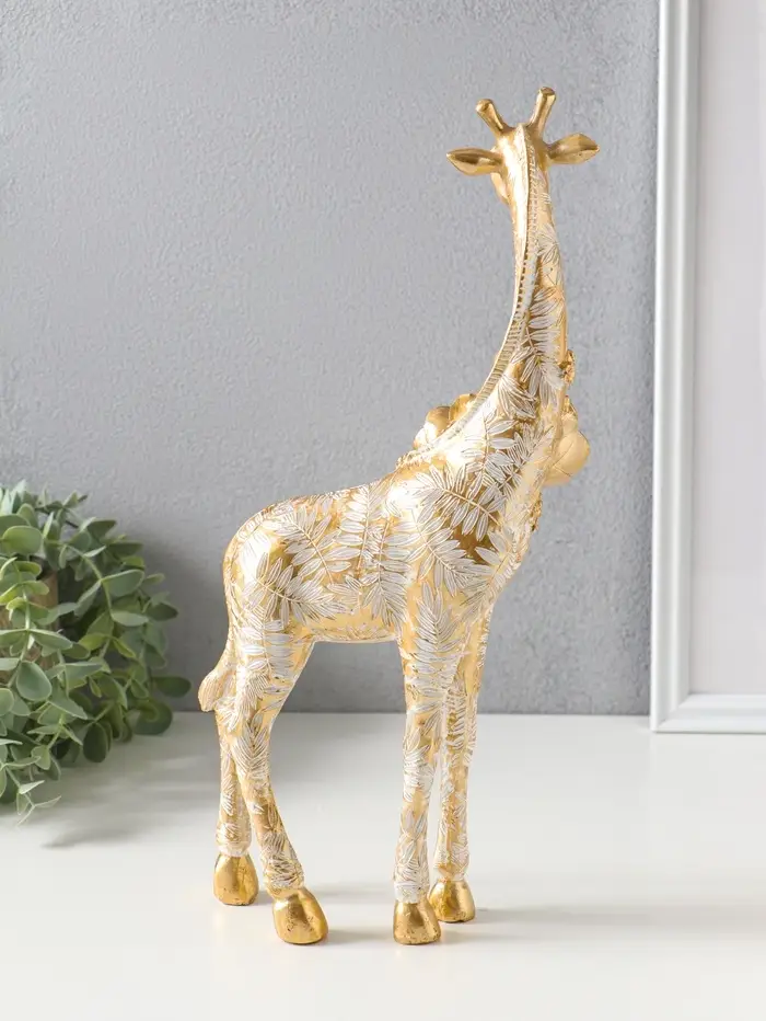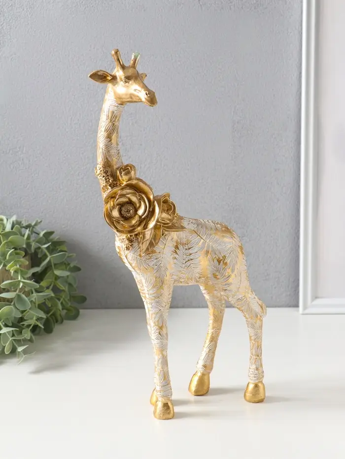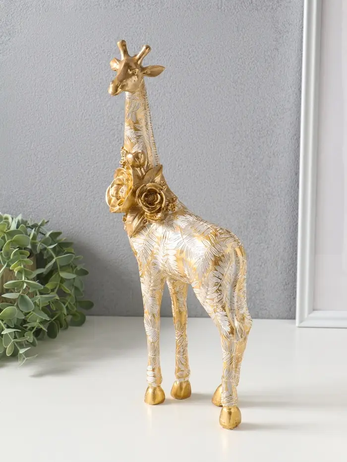 Сувенир полистоун "Жираф с листьями и цветами" бело-золотой 17,3х8,3х35,5 см