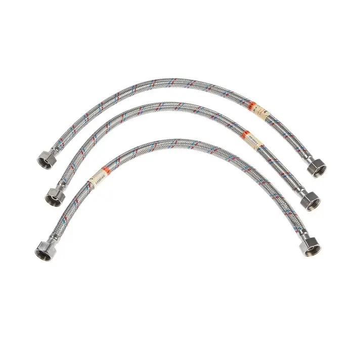Гибкая подводка оснащена накидными гайками из латуни, что позволяет осуществить герметичный монтаж к системе водоснабжения.