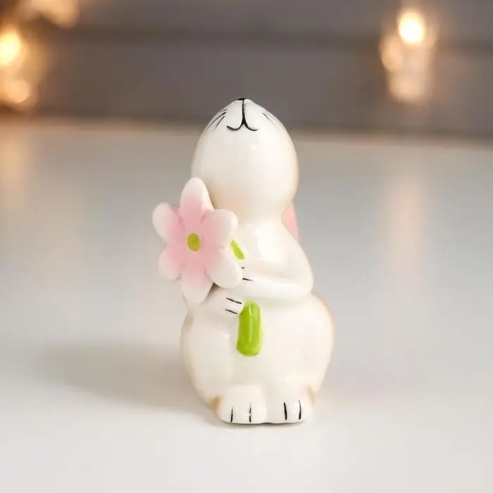 Сувенир керамика "Зайчик с ромашкой" 9,2х5,7х6,2 см