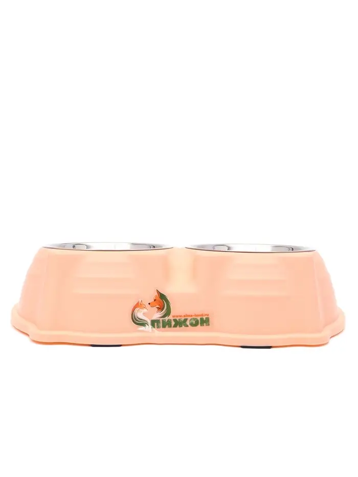 Миска двойная, 25×14×5 см, на пластиковом основании, металл, розовая