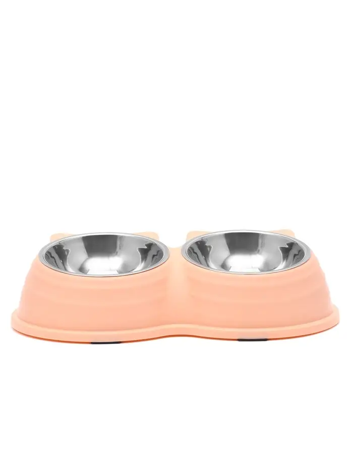 - Вместительность: две отдельные чаши объемом по 160 мл каждая позволяют одновременно насыпать сухой корм и наливать свежую воду. Это идеальный формат для ежедневного использования в квартире или доме.
