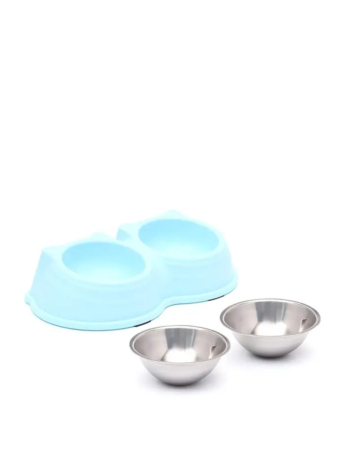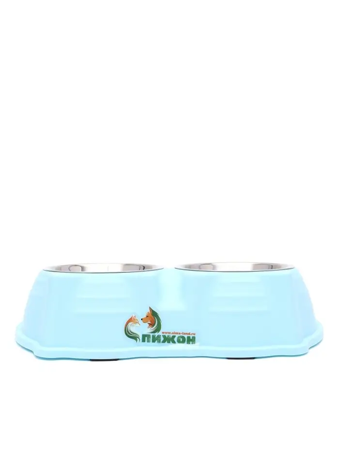 Миска двойная «Кисы», 28×16.3×7.3 см, на пластиковом основании, металл, голубая