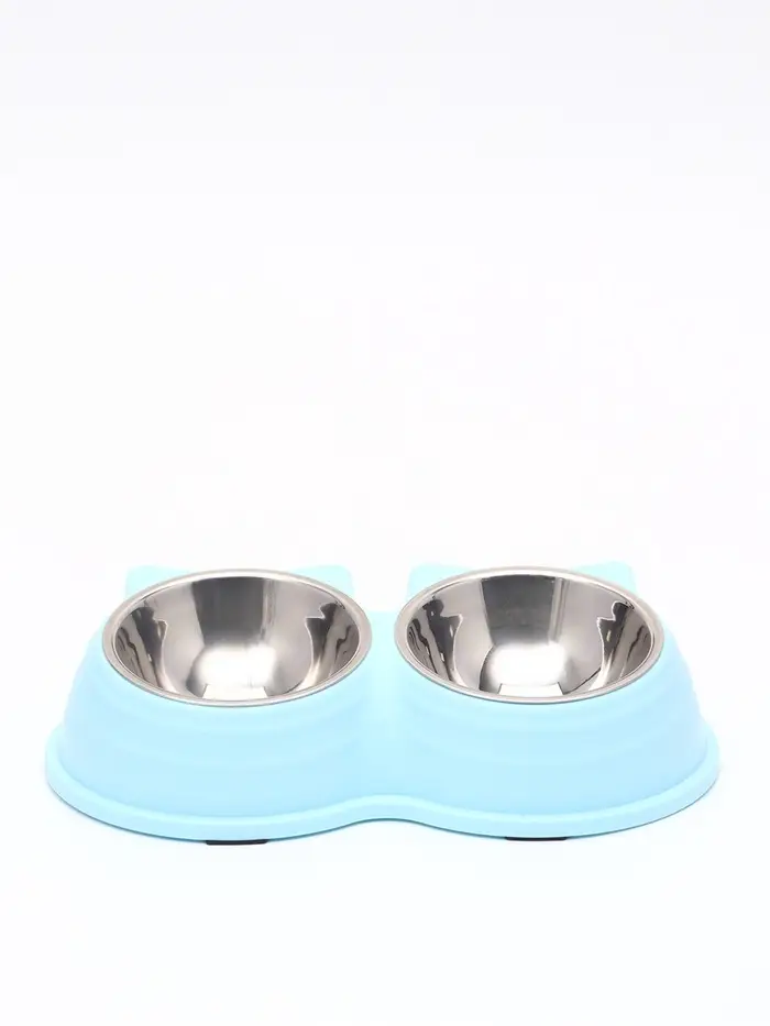 - Вместительность: две отдельные чаши объемом по 160 мл каждая позволяют одновременно насыпать сухой корм и наливать свежую воду. Это идеальный формат для ежедневного использования в квартире или доме.