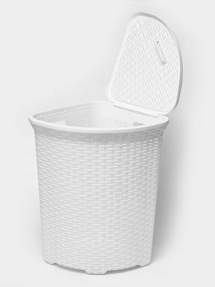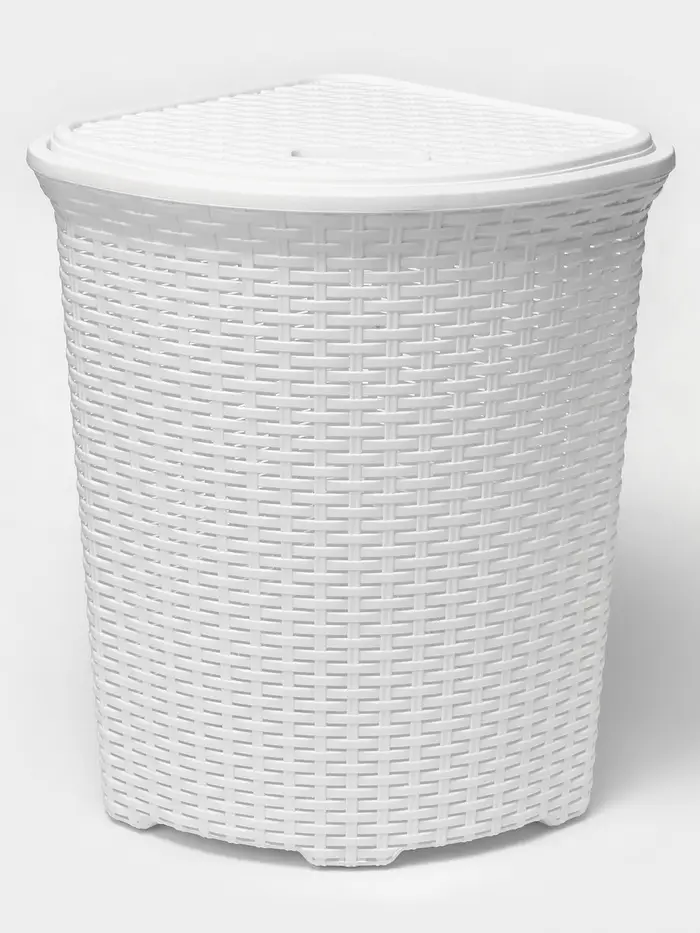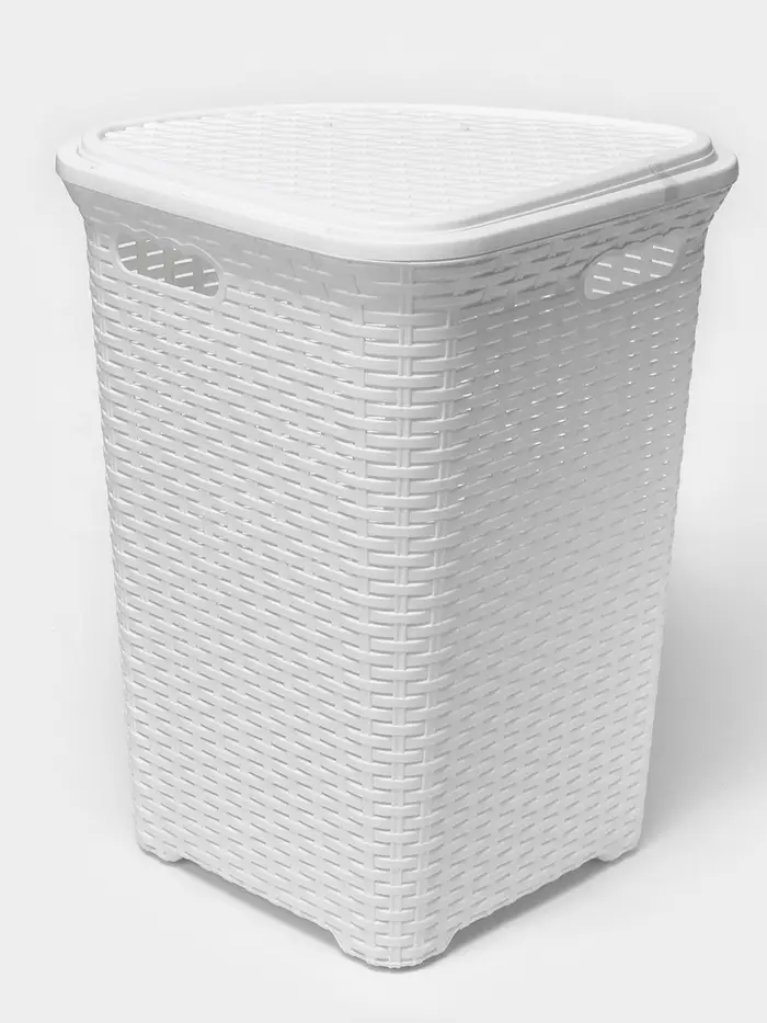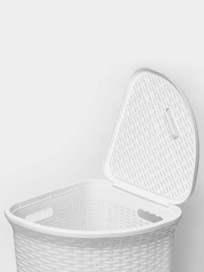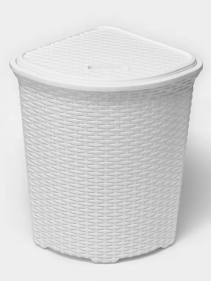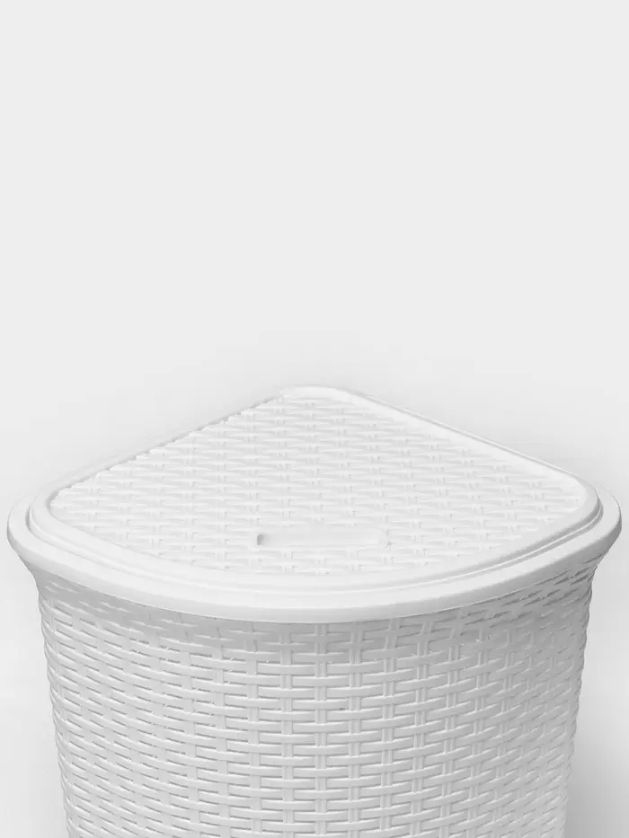 Корзина для белья угловая с крышкой «Ротанг», 60 л, 40.5×40.5×57 см, белая