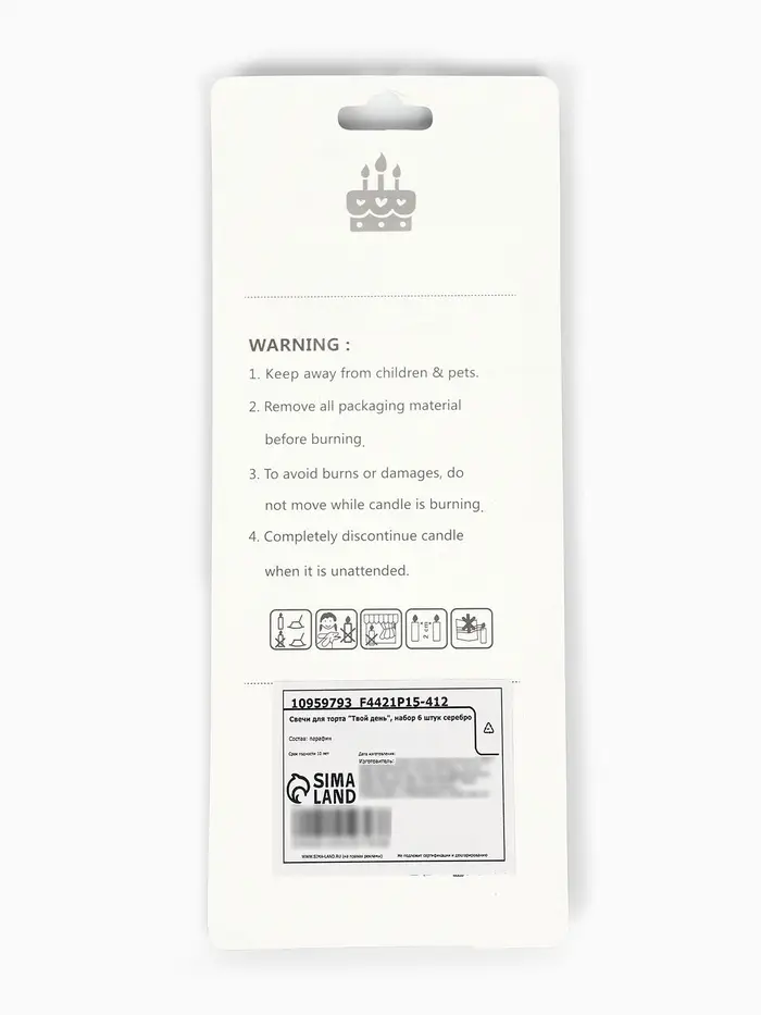 Свечи для торта "Твой день", набор 6 штук серебро