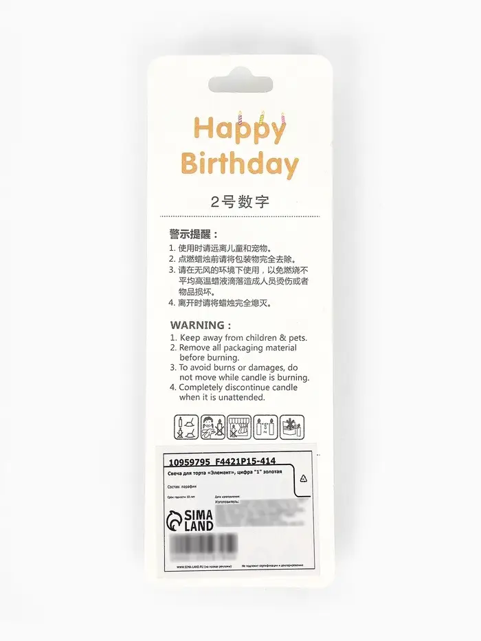 Свеча для торта «Элемент», цифра "1" золотая