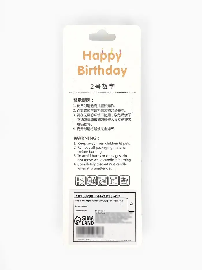Свеча для торта «Элемент», цифра "4" золотая