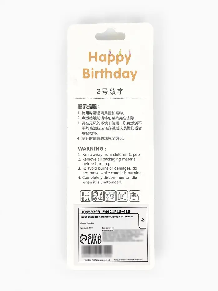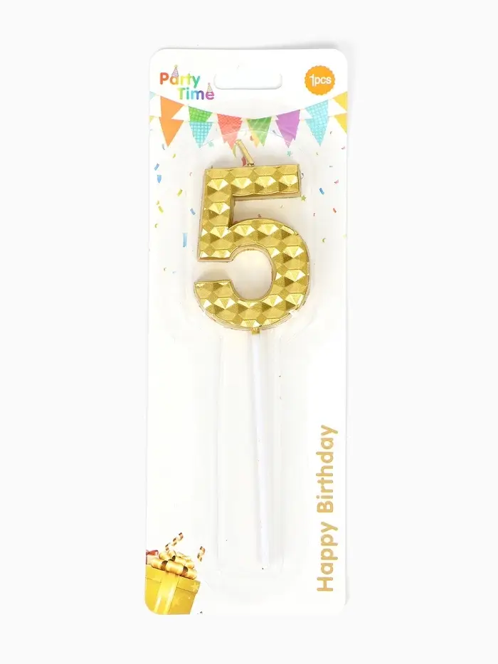 Свеча для торта «Элемент», цифра "5" золотая