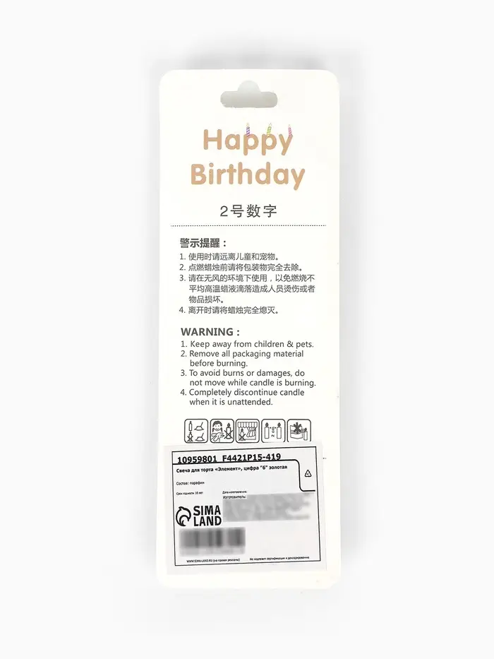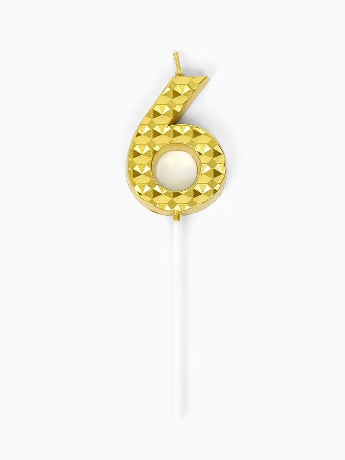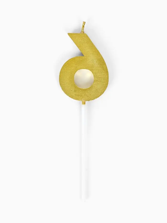 Свеча для торта «Элемент», цифра "6" золотая