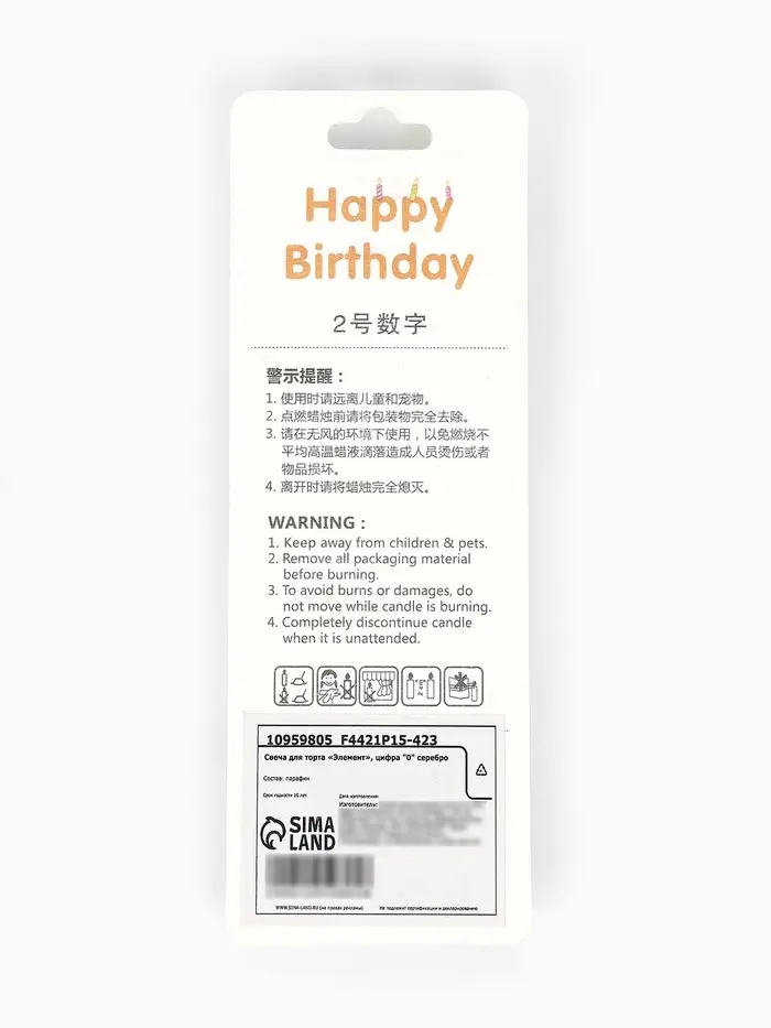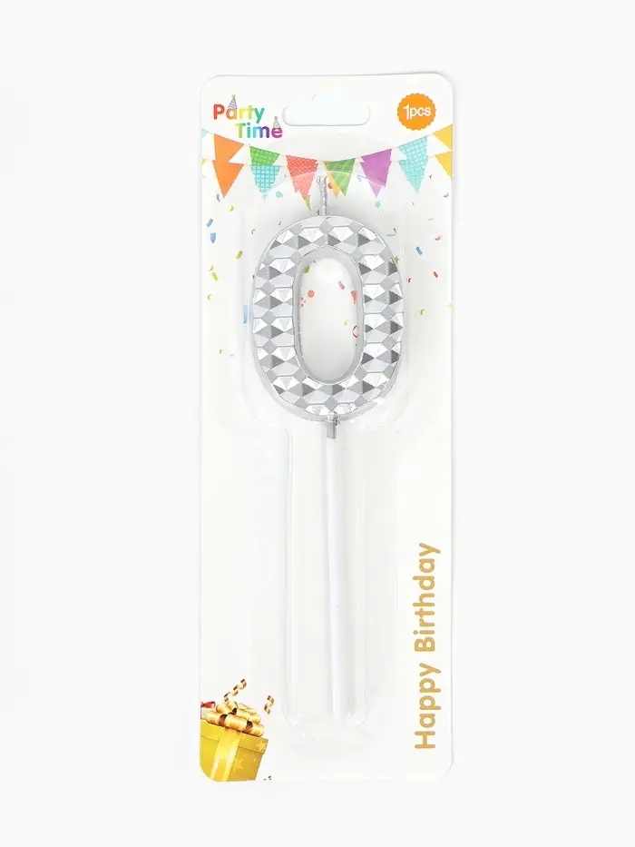 Свеча для торта «Элемент», цифра "0" серебро