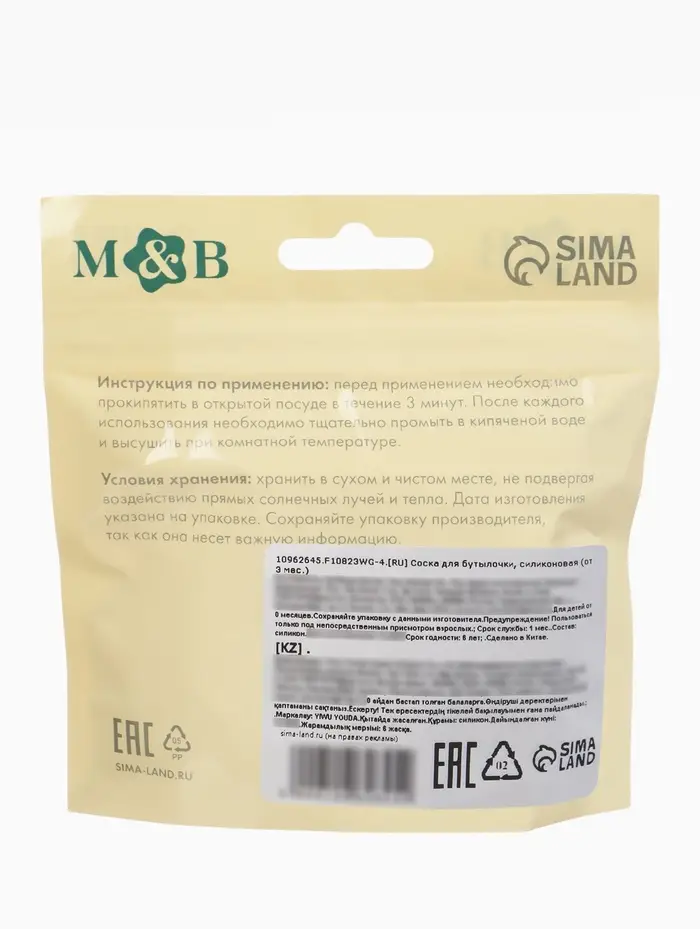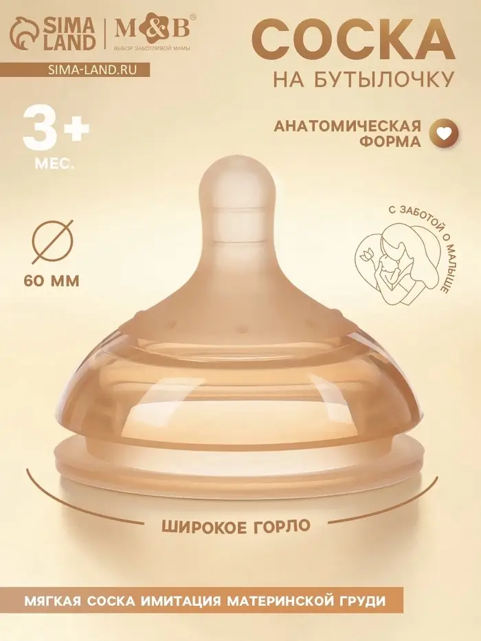 Соска на бутылочку, +3 мес., широкое горло Ø 60 мм, M&B